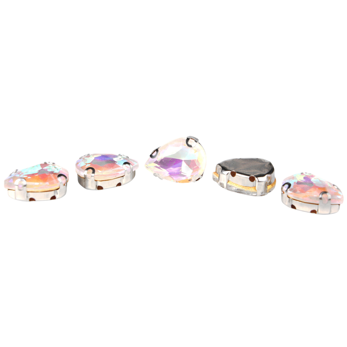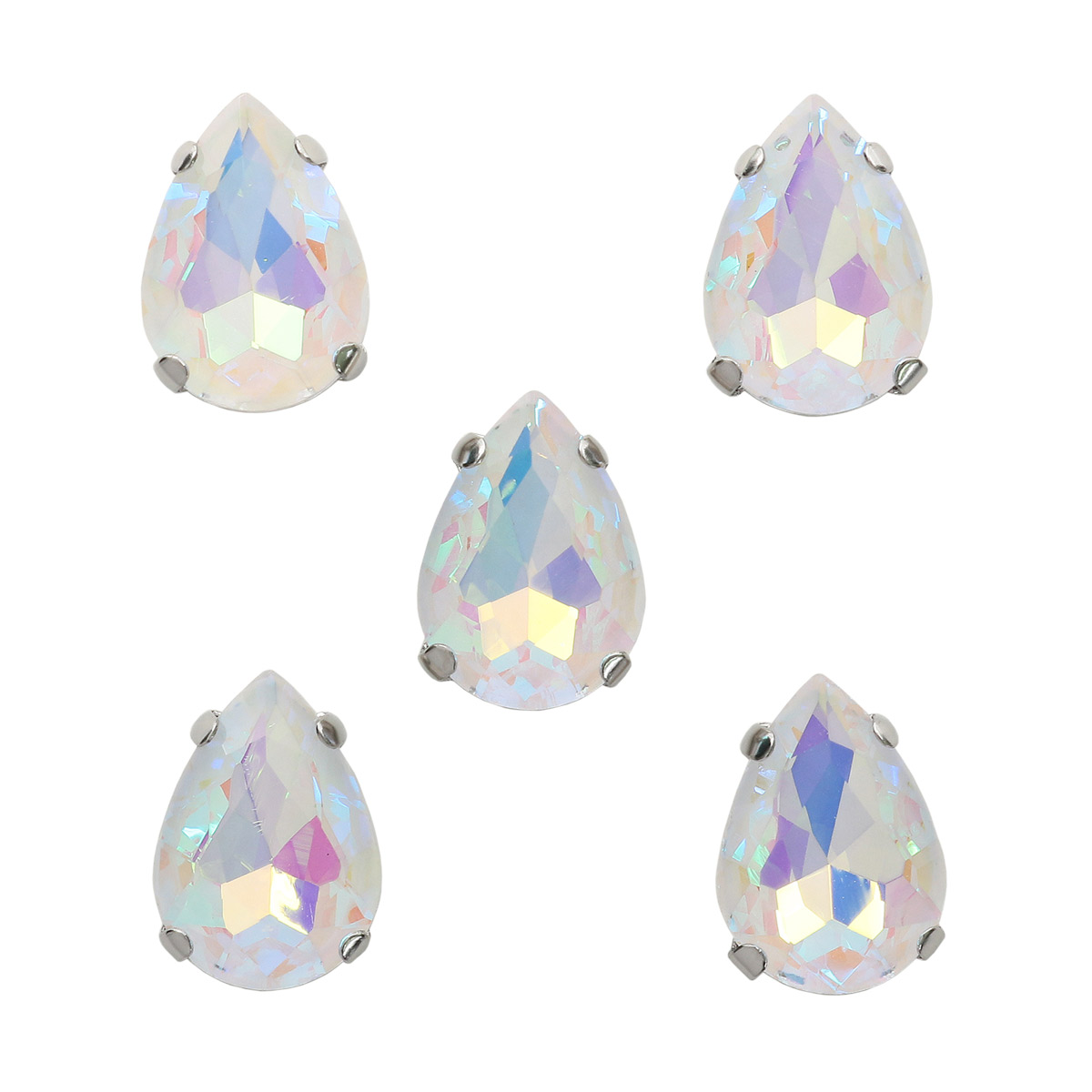 АЦ002НН1014 Хрустальные стразы в цапах формы 'капля', белый с покрытием AB 10х14 мм, 5 шт.