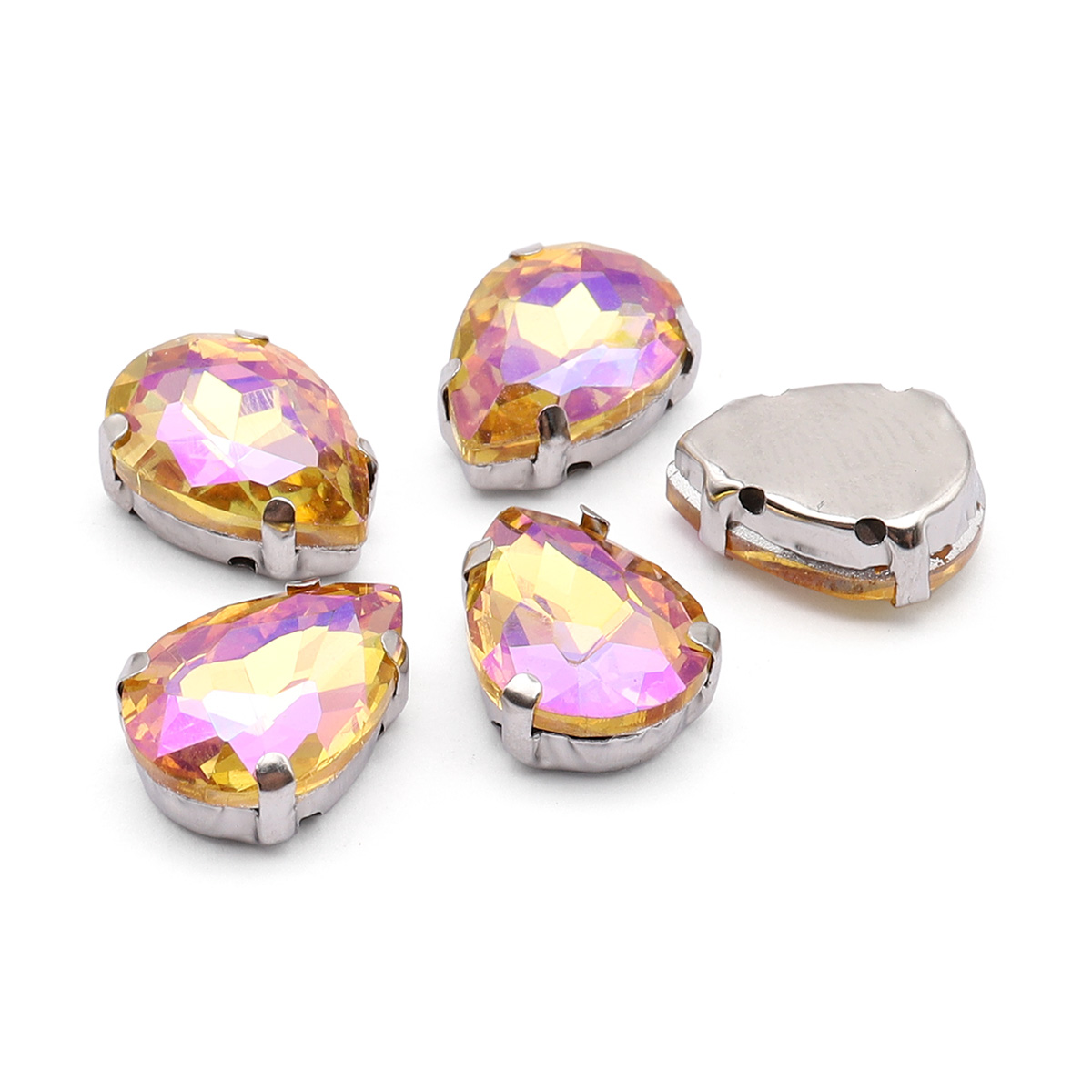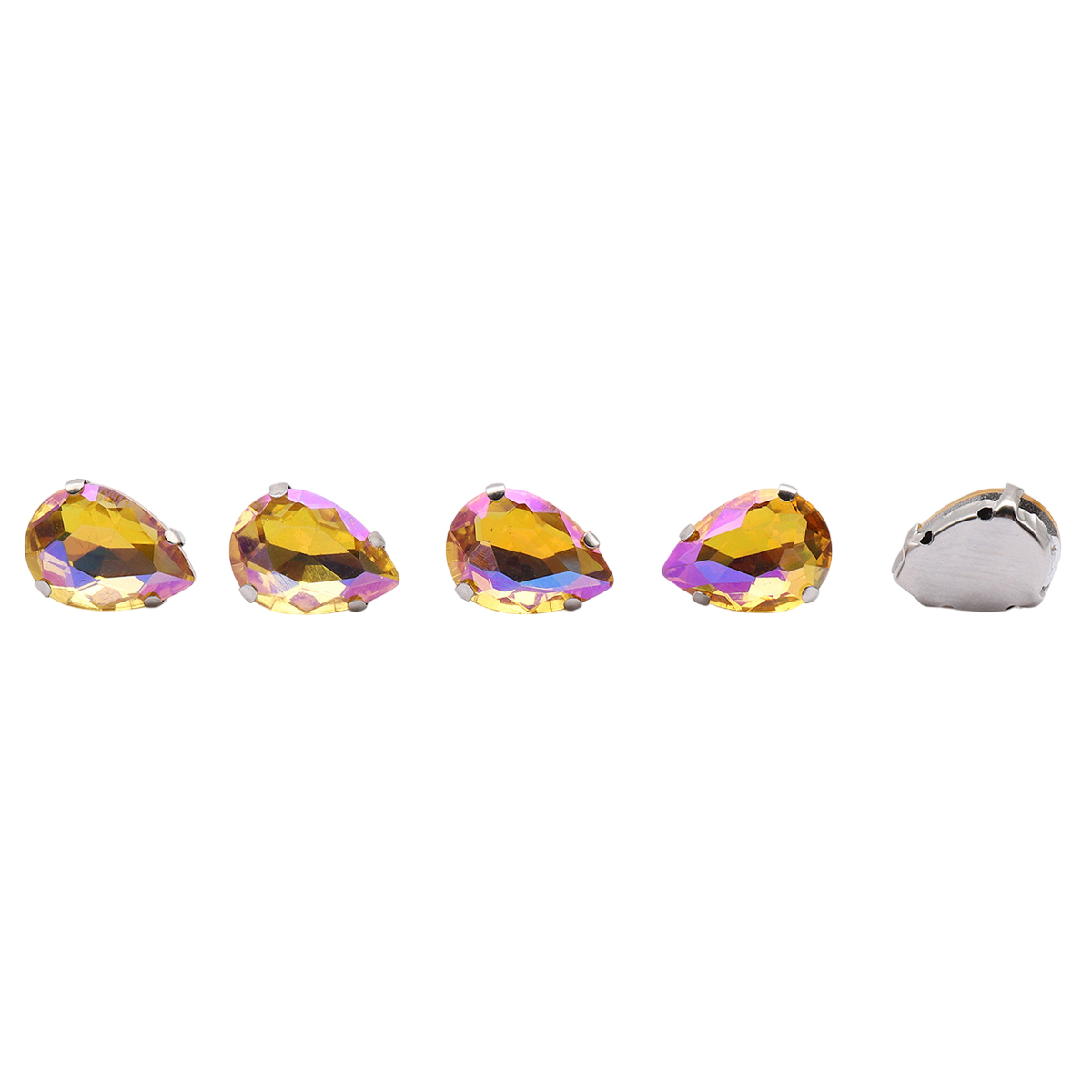 АЦ005НН1014 Хрустальные стразы в цапах формы 'капля', желтый с покрытием AB 10х14 мм, 5 шт