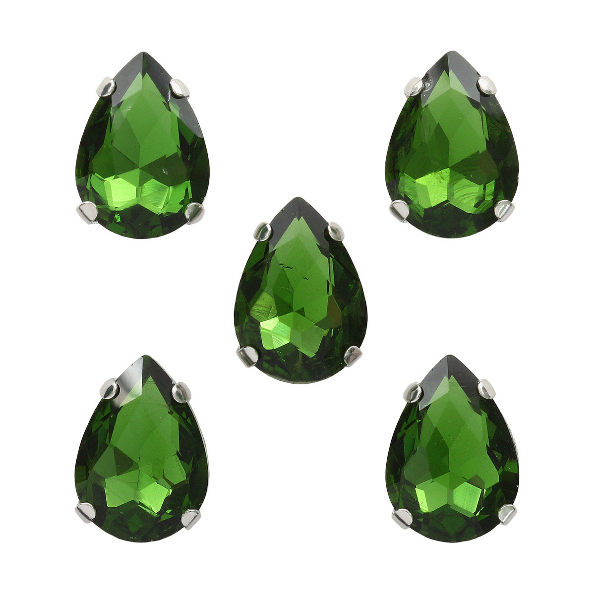 АЦ008НН1014 Хрустальные стразы в цапах формы 'капля', зеленый 10х14 мм, 5 шт.