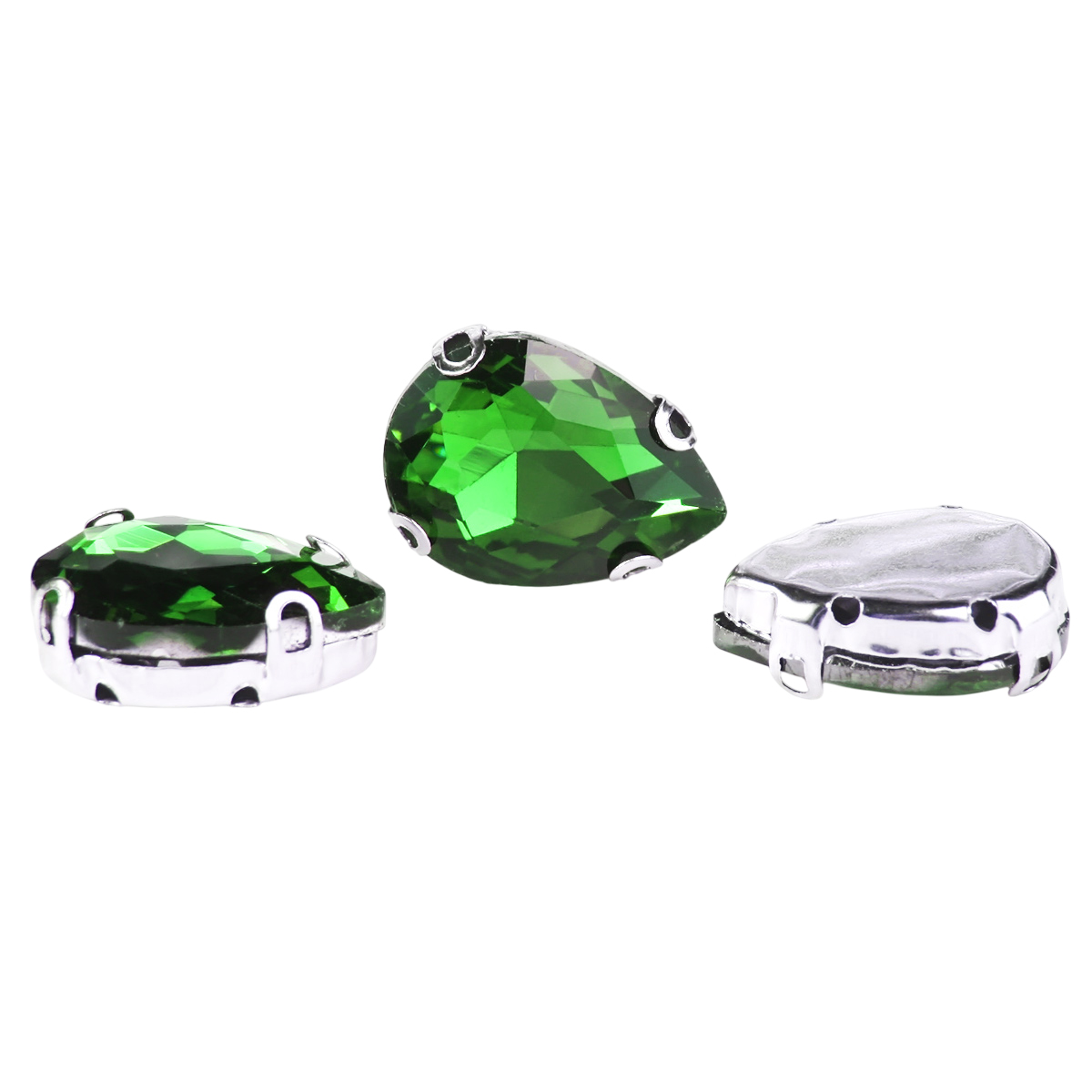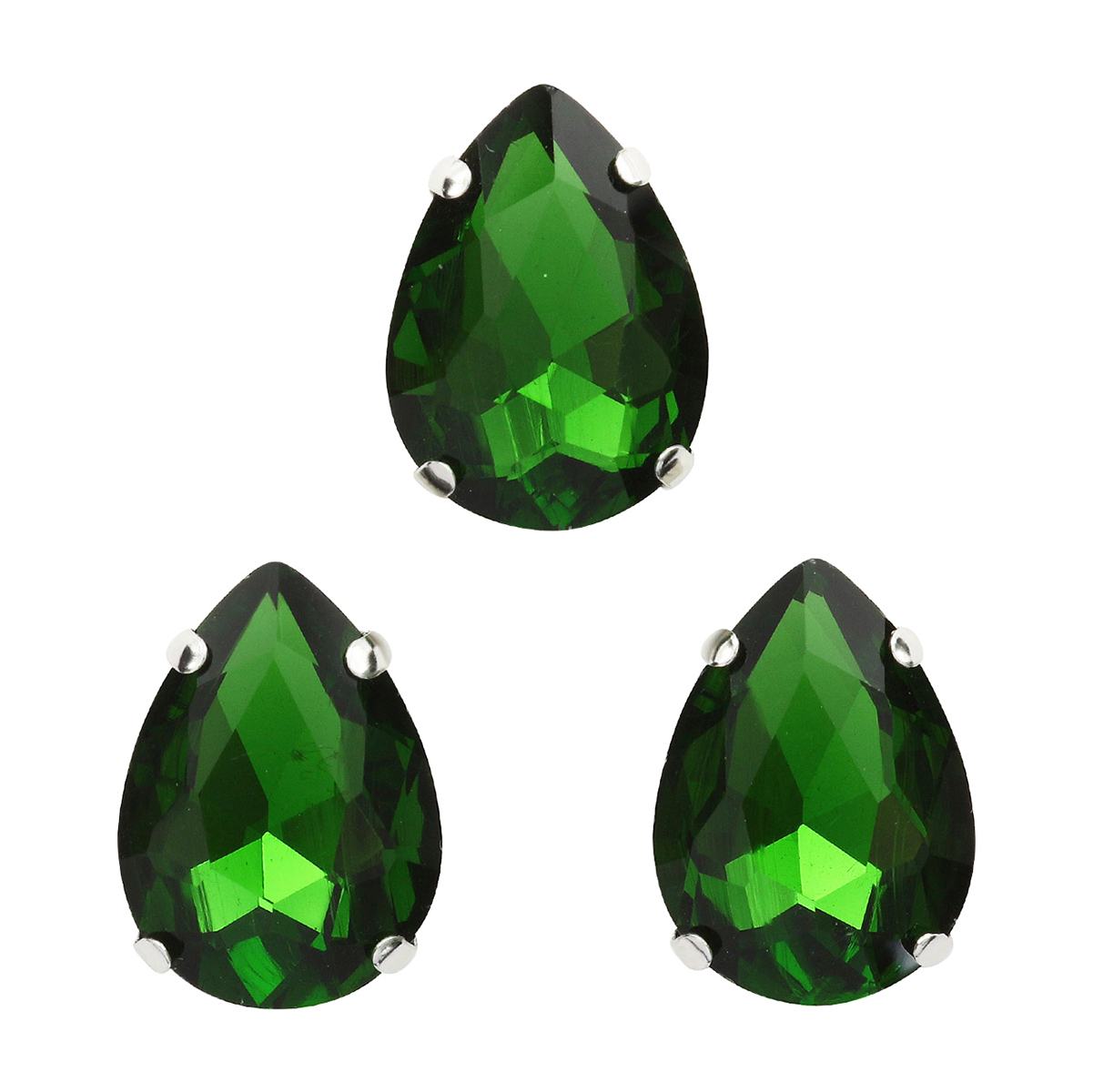 АЦ008НН1318 Хрустальные стразы в цапах формы 'капля', зеленый 13х18 мм, 3 шт.