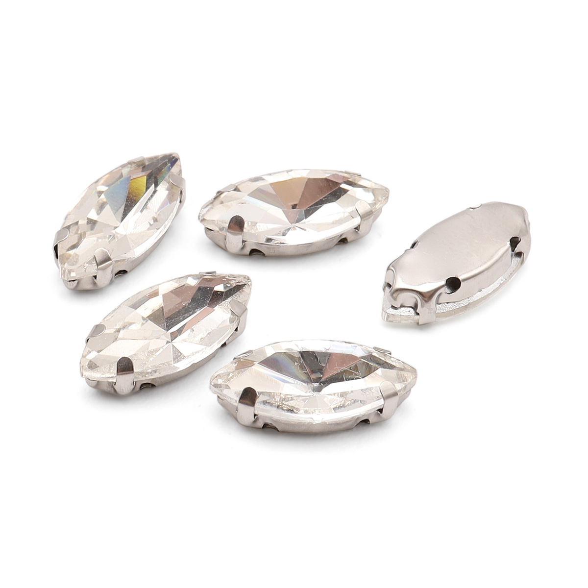 МЦ001НН715 Хрустальные стразы в цапах формы 'миндаль', белый 7х15 мм, 5 шт.