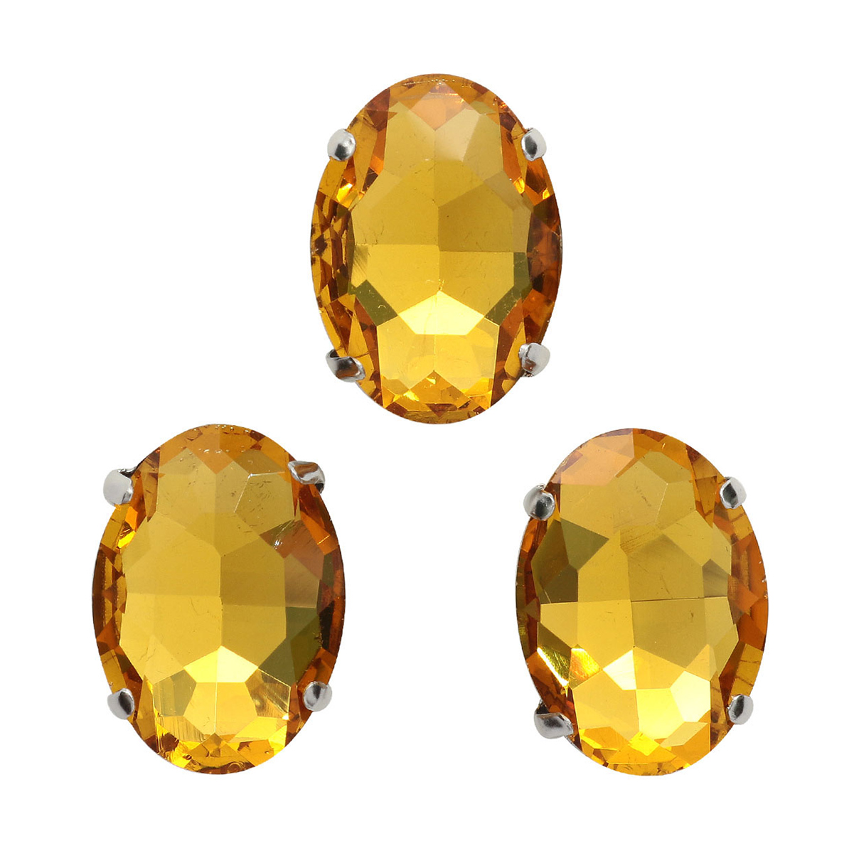 ОЦ004НН1318 Хрустальные стразы в цапах овальной формы, желтый 13х18 мм, 3 шт.