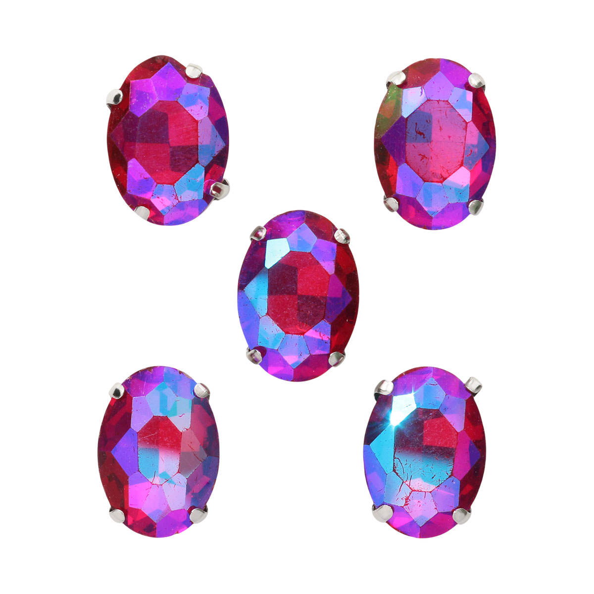 ОЦ006НН1014 Хрустальные стразы в цапах овальной формы, фуксия 10х14 мм, 5 шт.
