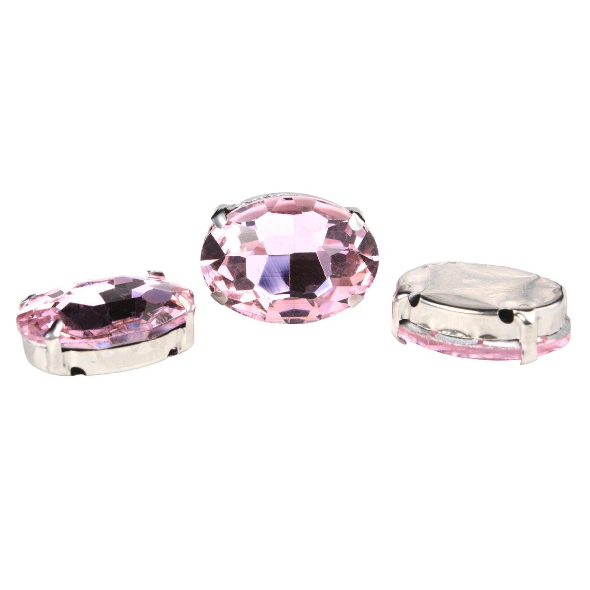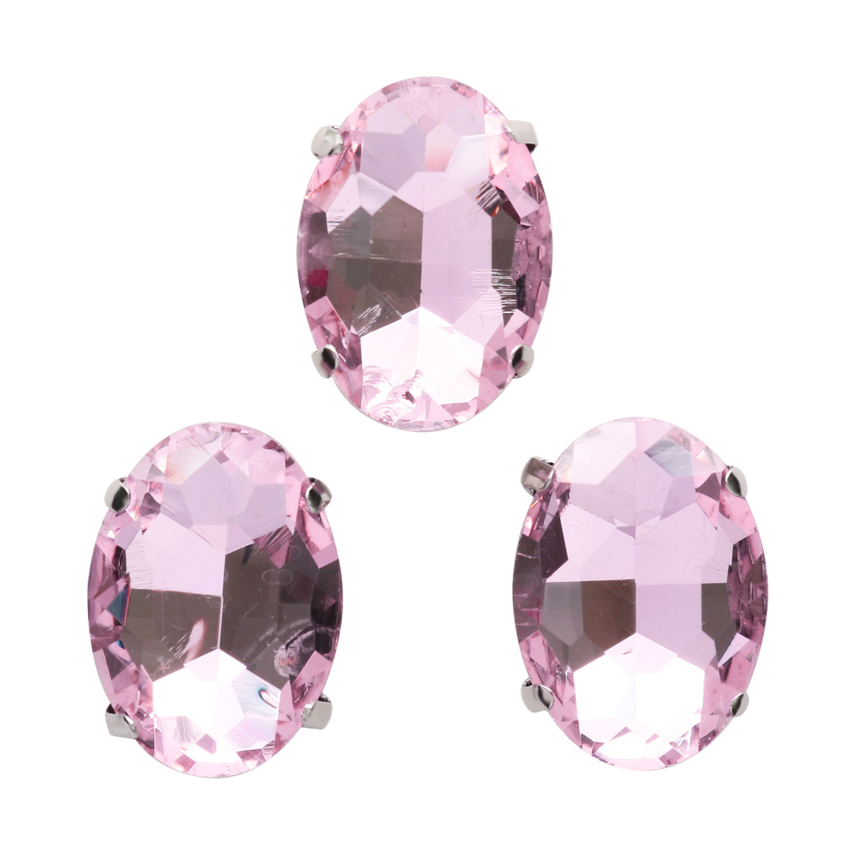 ОЦ007НН1318 Хрустальные стразы в цапах овальной формы, розовый 13х18 мм, 3 шт