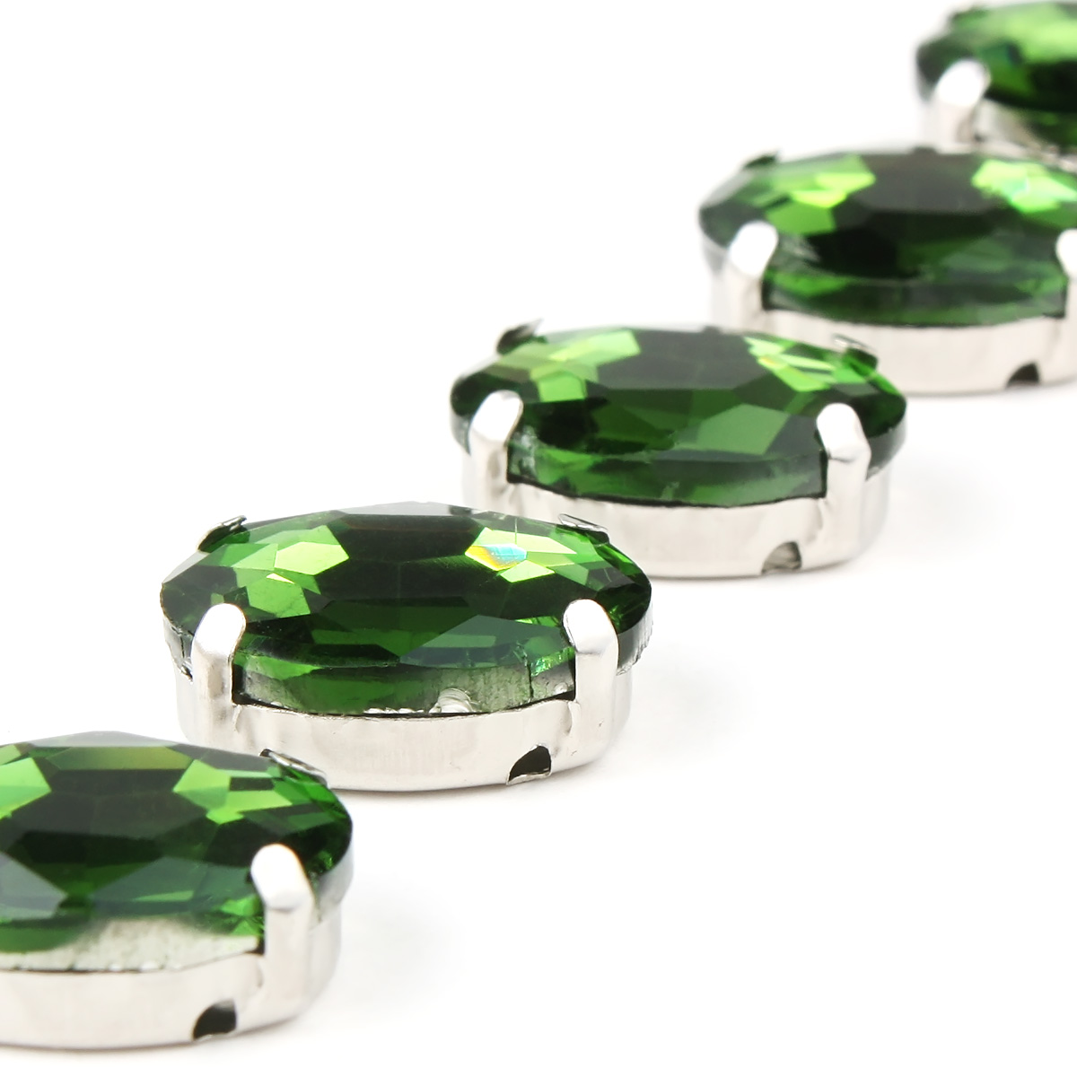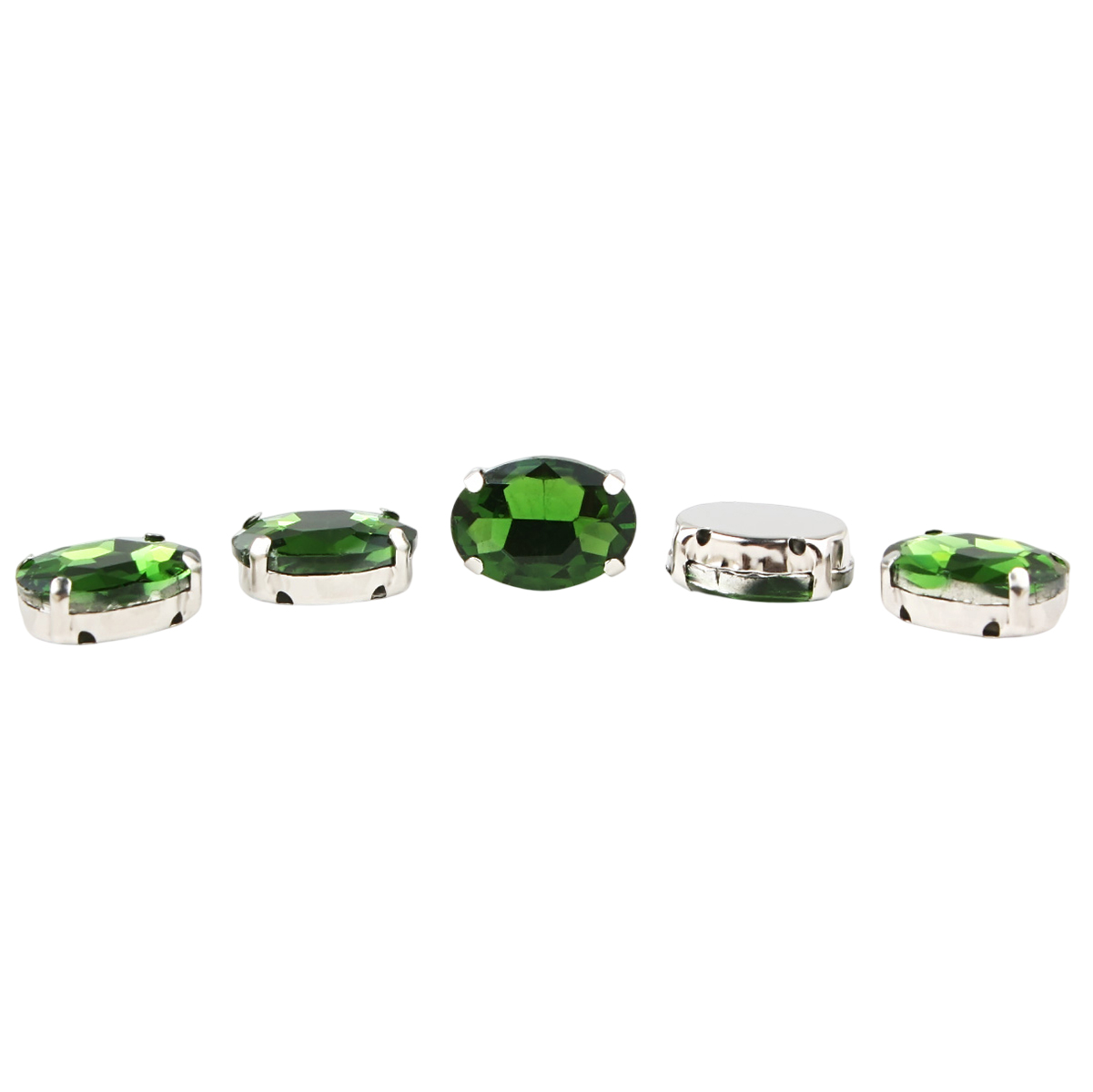 ОЦ008НН1014 Хрустальные стразы в цапах овальной формы, зеленый 10х14 мм, 5 шт.