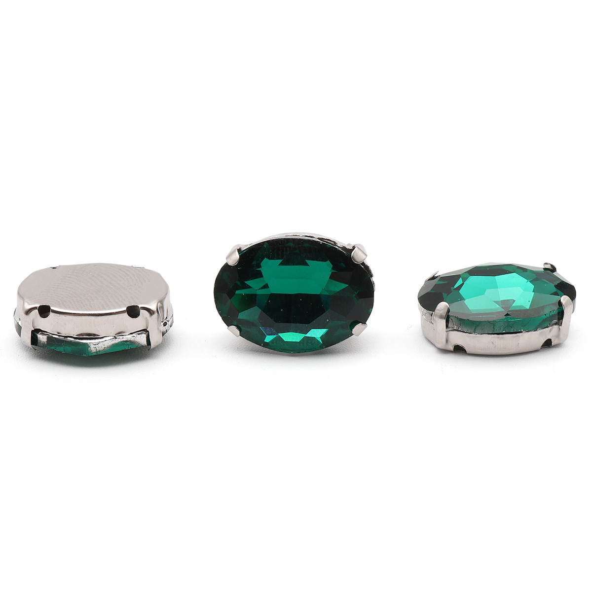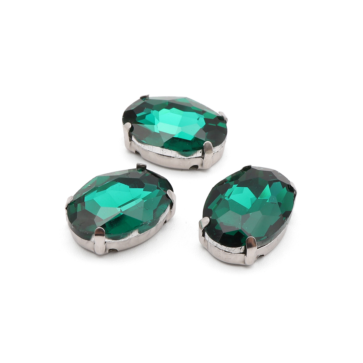 ОЦ009НН1318 Хрустальные стразы в цапах овальной формы, изумрудный 13х18 мм, 3 шт.