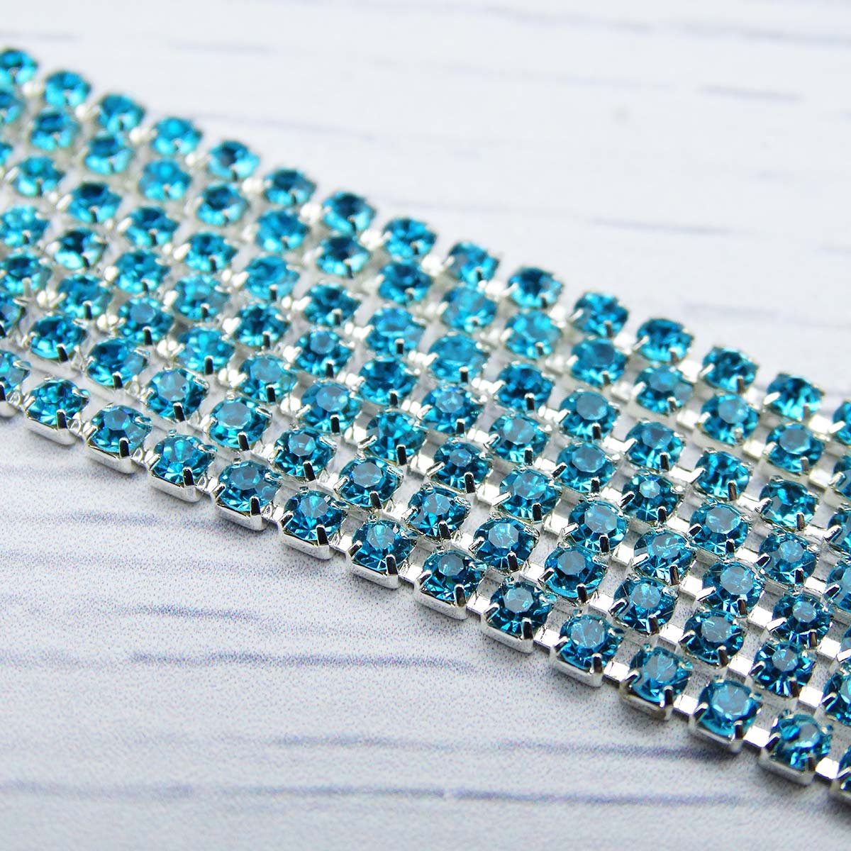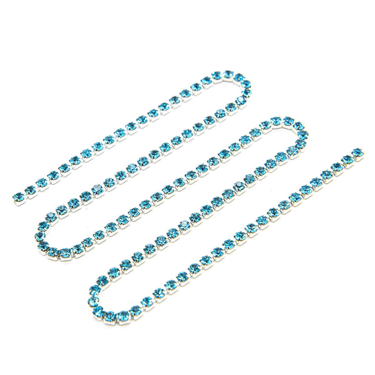 ЦС003СЦ2 Стразовые цепочки (серебро), цвет: ярко-голубой, размер 2 мм, 30 см/упак.