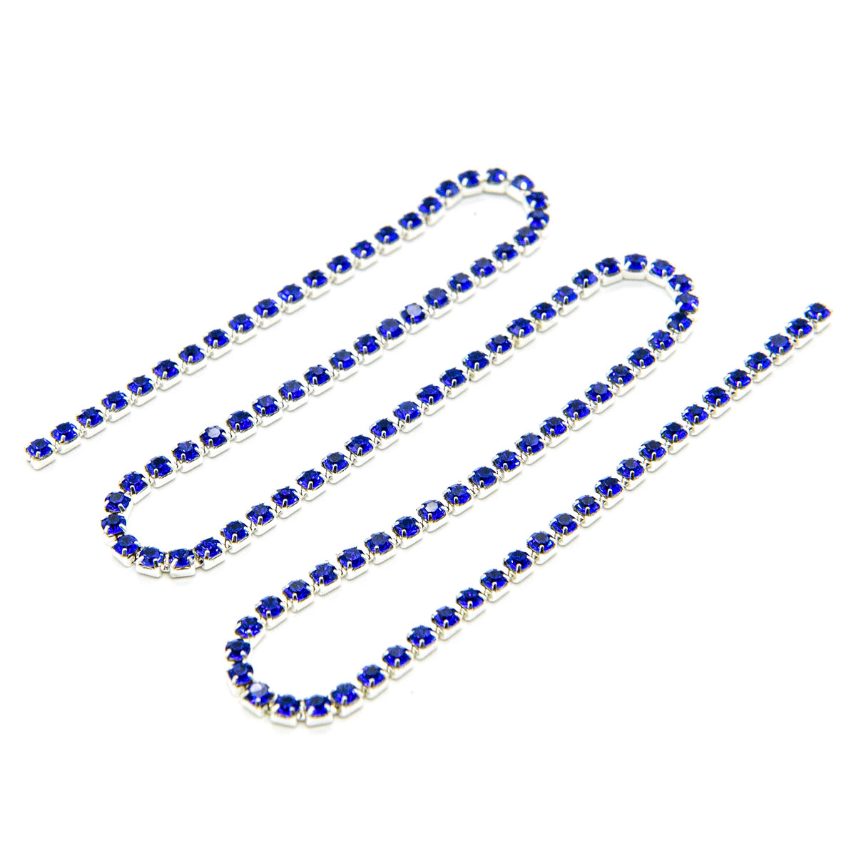 ЦС005СЦ2 Стразовые цепочки (серебро), цвет: сапфир, размер 2 мм, 30 см/упак.