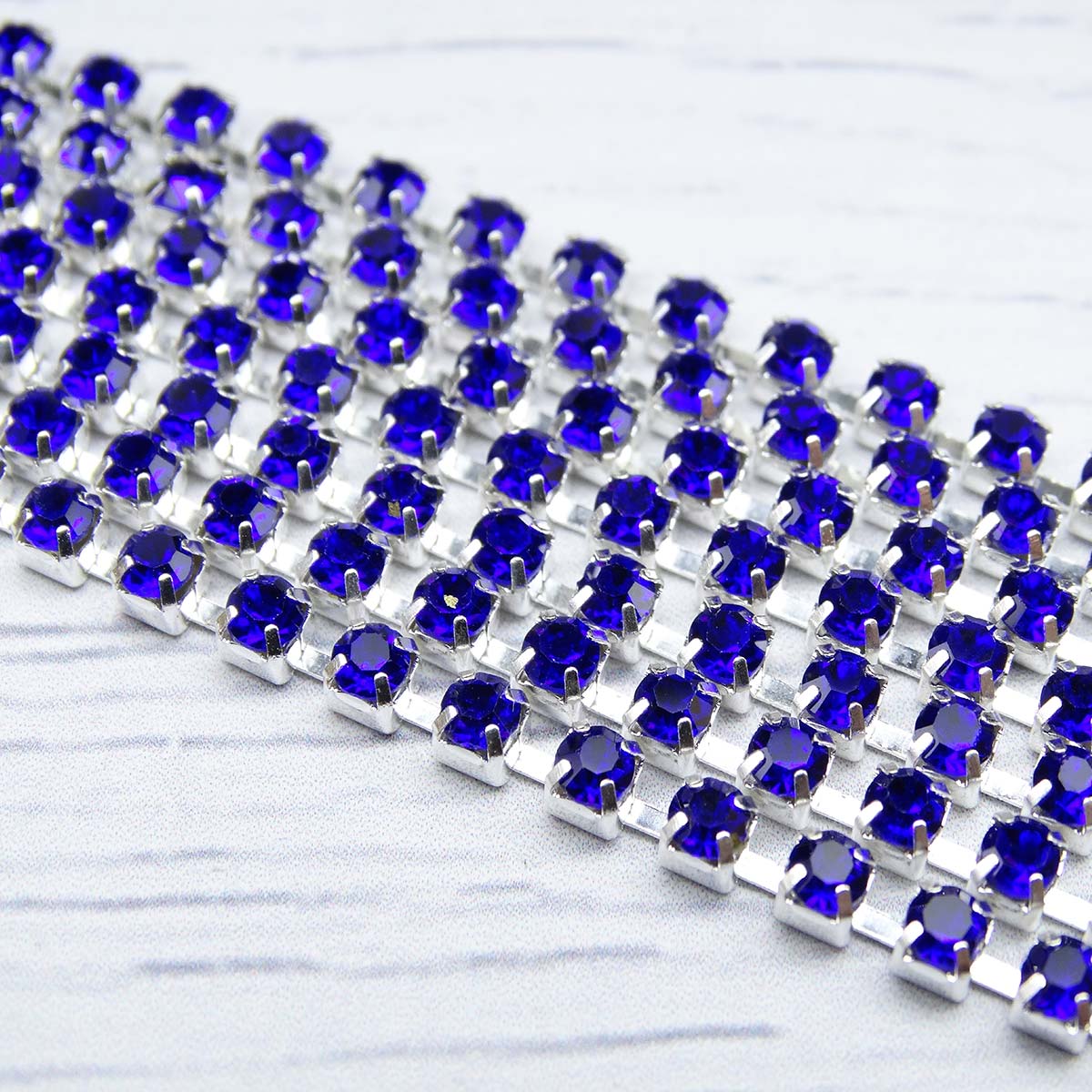 ЦС005СЦ3 Стразовые цепочки (серебро), цвет: сапфир, размер 3 мм, 30 см/упак.
