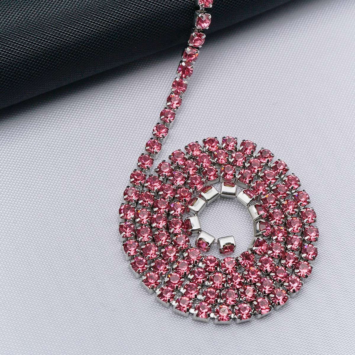 ЦС006СЦ2 Стразовые цепочки (серебро), цвет: розовый, размер 2 мм, 30 см/упак.