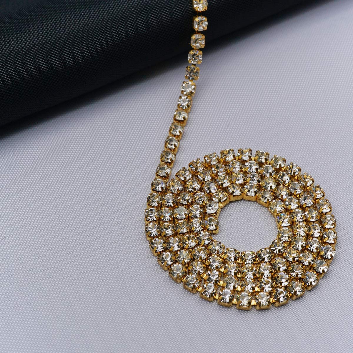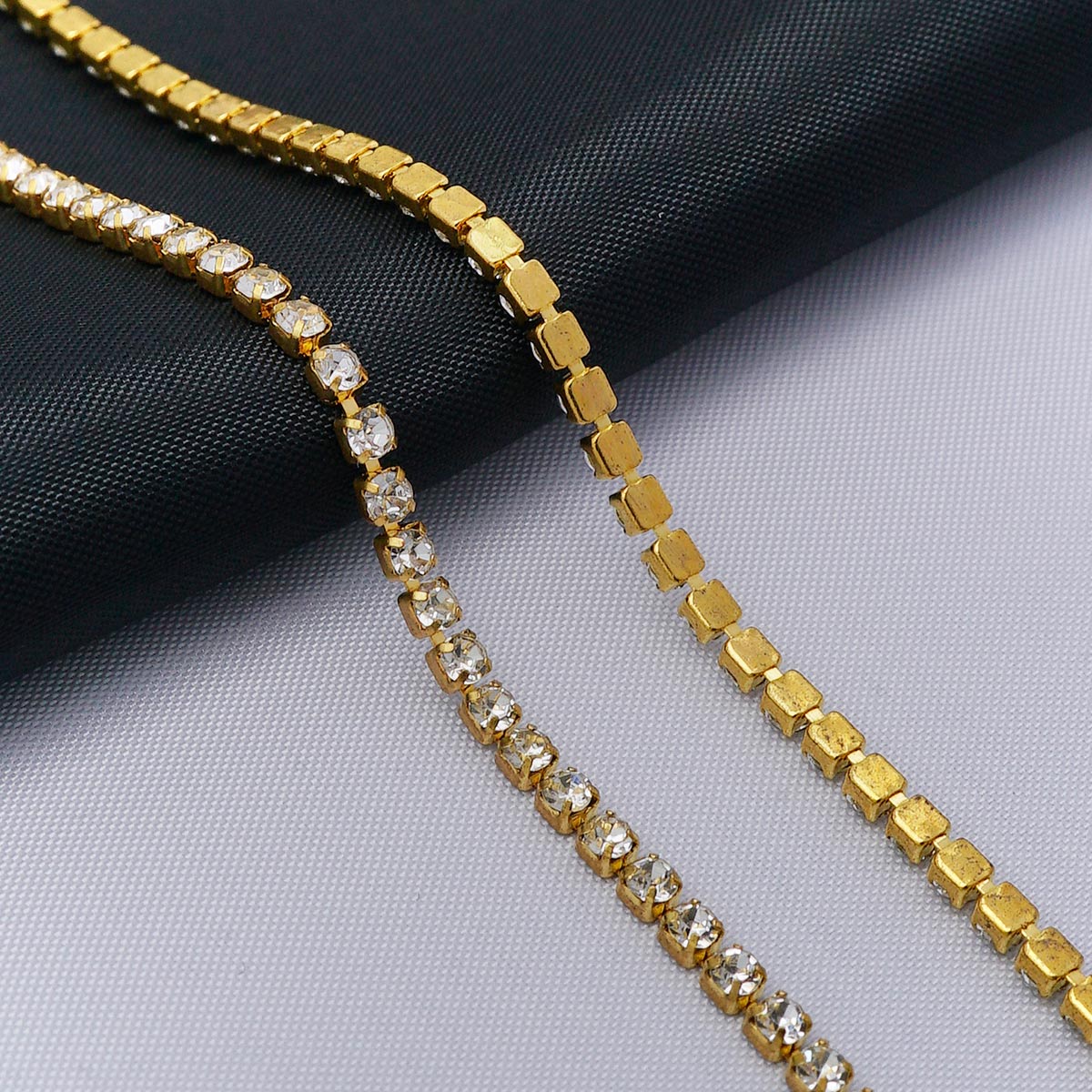 ЦС001ЗЦ2 Стразовые цепочки (золото), цвет: белый, размер 2 мм, 30 см/упак.