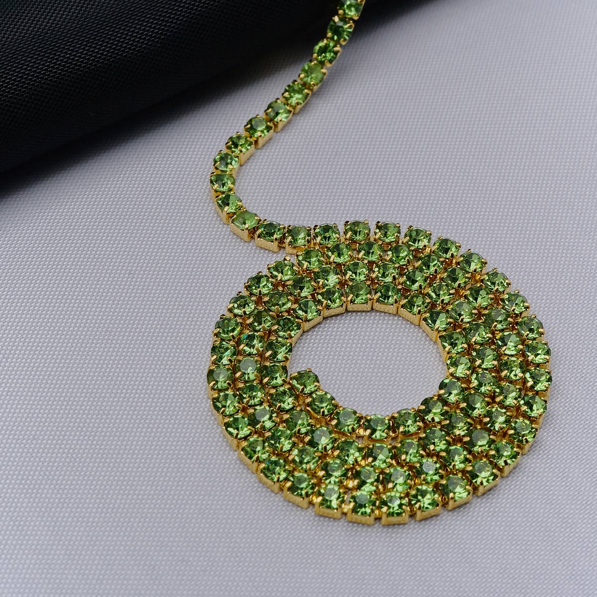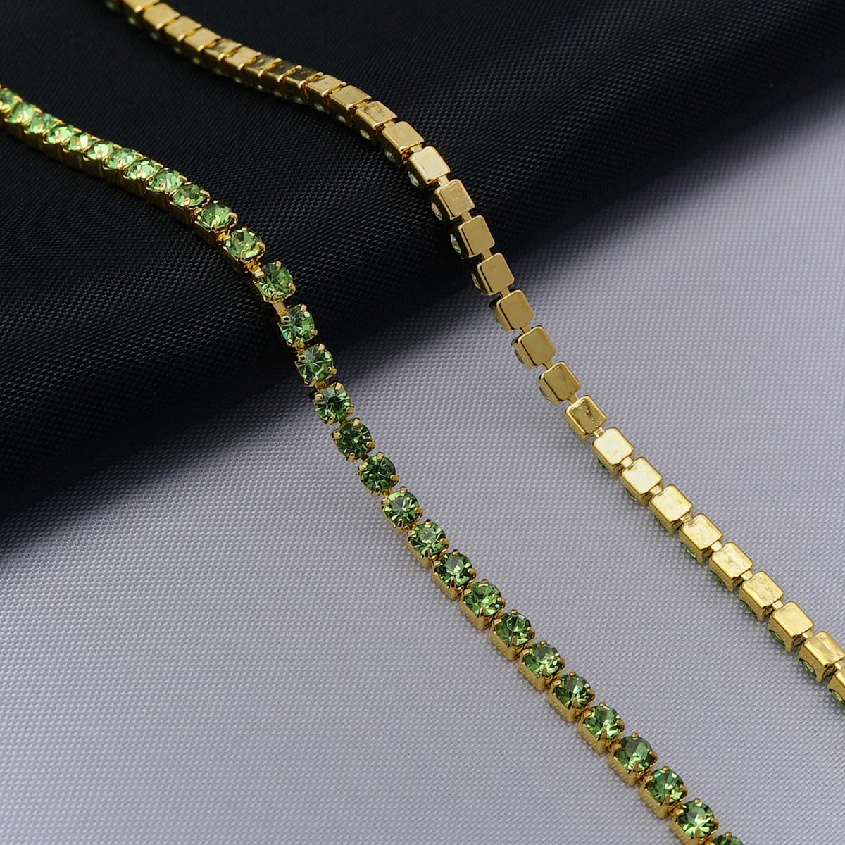 ЦС009ЗЦ2 Стразовые цепочки (золото), цвет: зеленый, размер 2 мм, 30 см/упак.