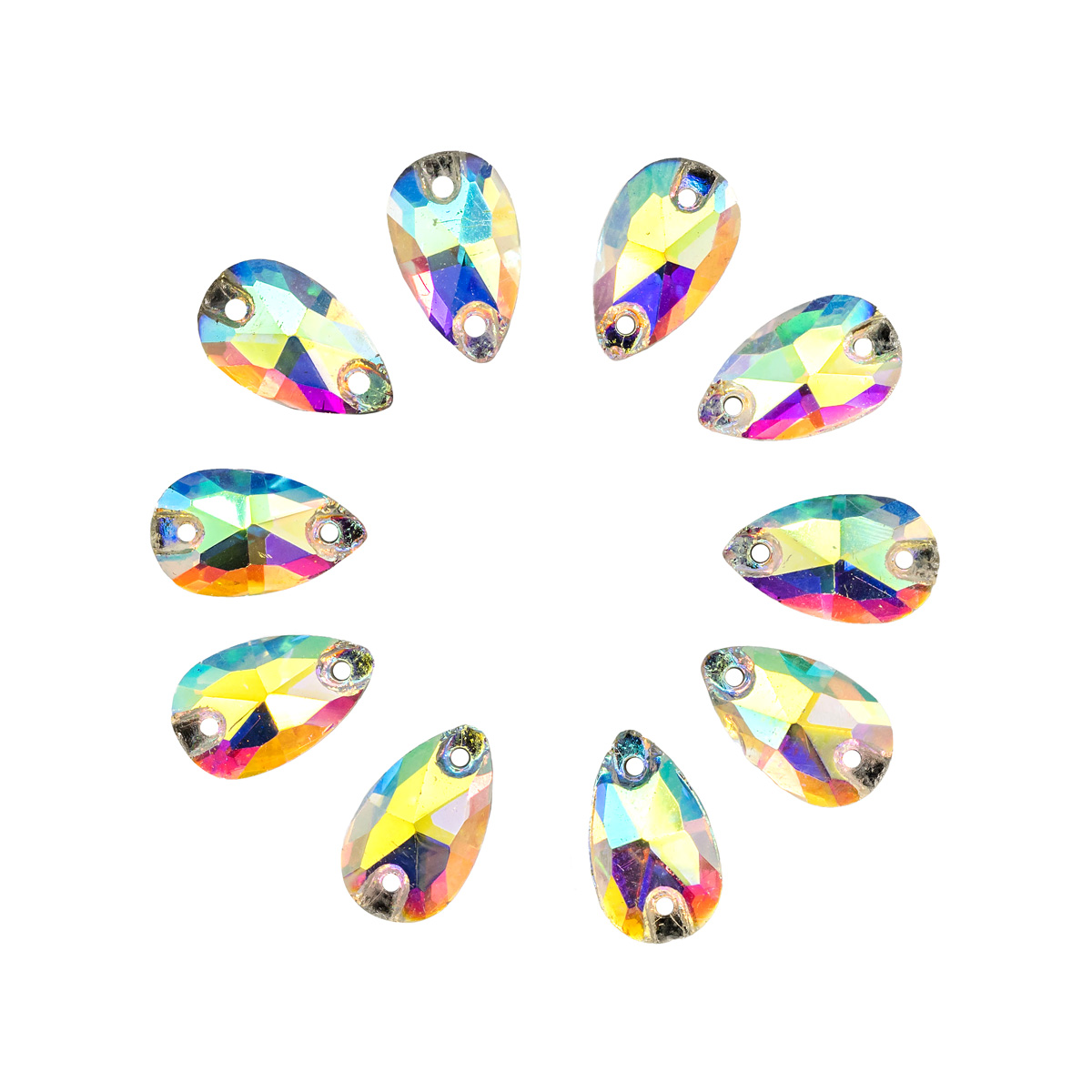 ХК002НН712 Хрустальные стразы пришивные формы 'капля' белый с покрытием AB 7х12 мм 10 шт/упак.