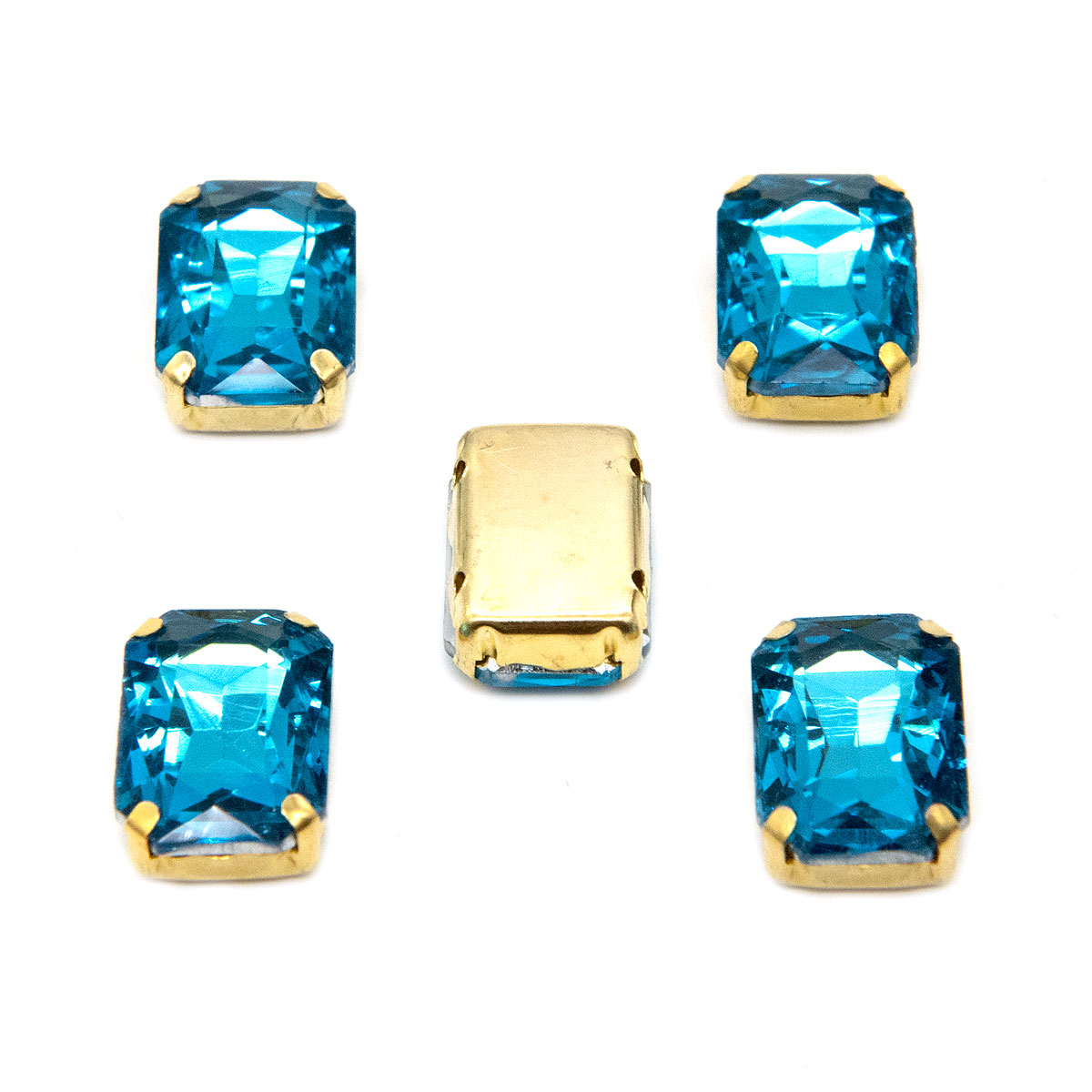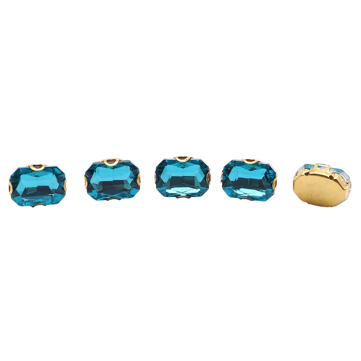 ПЦ008НН1014 Хрустальные стразы в цапах прямоугольные (золото) ярко-голубой 10*14мм, 5шт/упак Astra&Craft