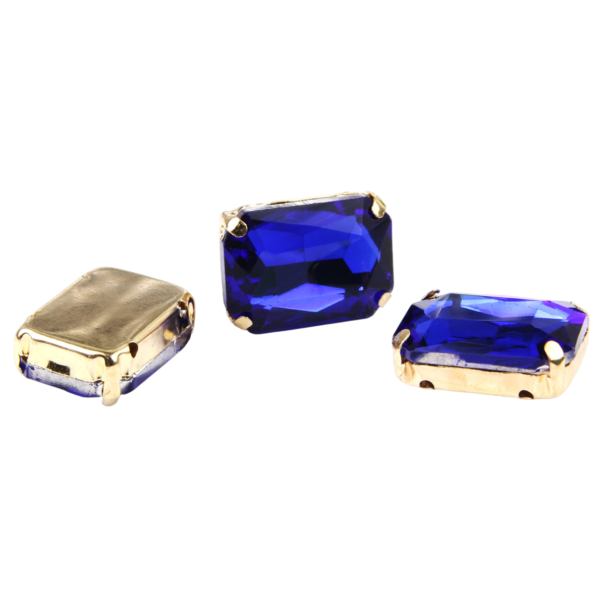 ПЦ009НН1318 Хрустальные стразы в цапах прямоугольные (золото) сапфир 13*18мм, 3шт/упак Astra&Craft
