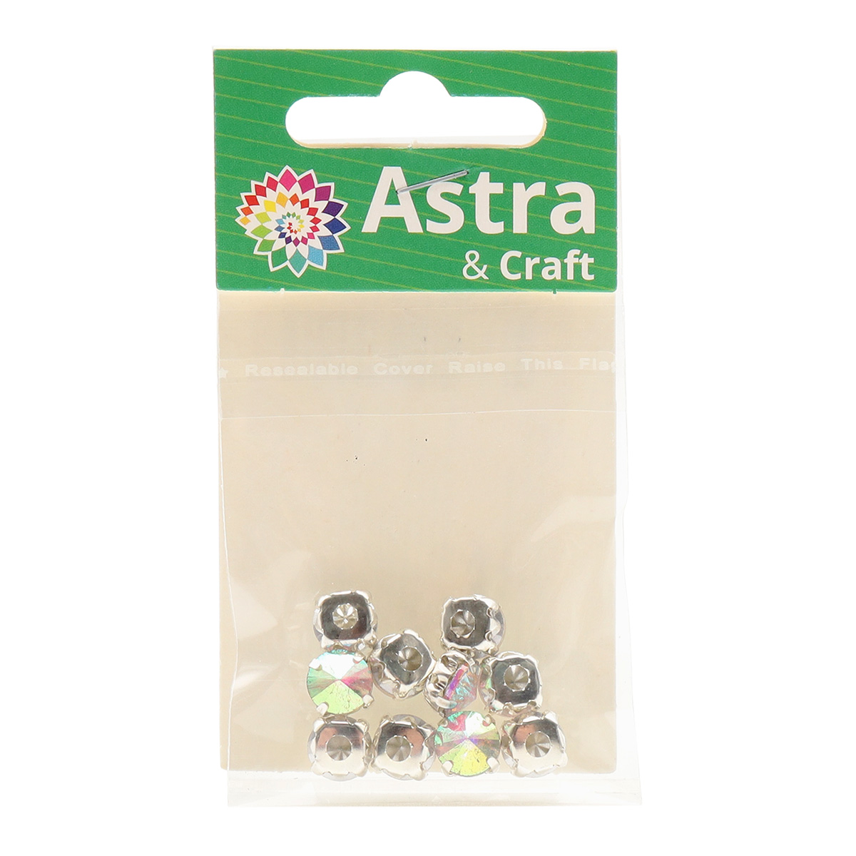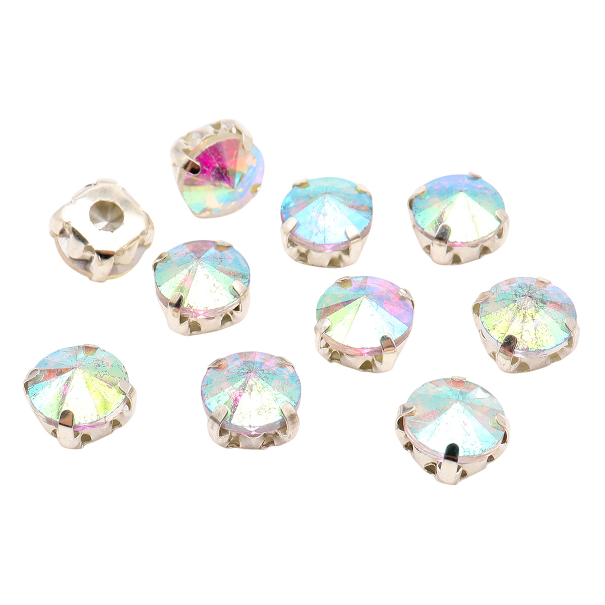 РЦ002НН8 Хрустальные стразы в цапах круглой формы, белый c AB покрытием 8 мм, 10 шт. Astra&Craft