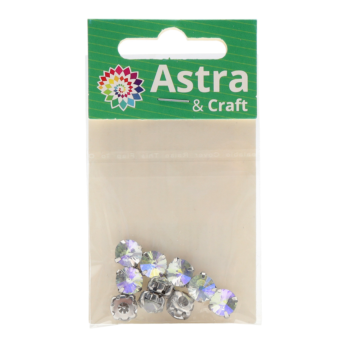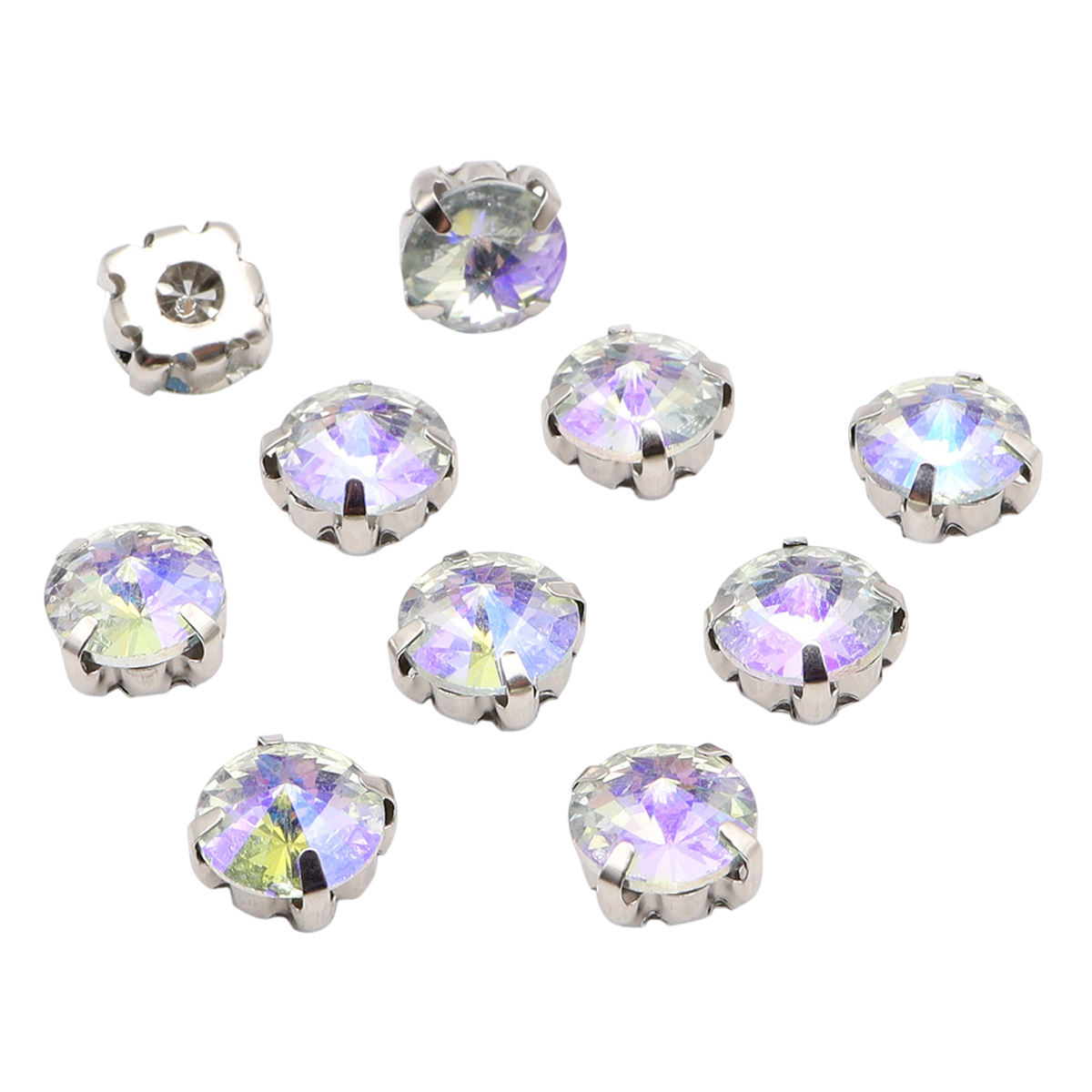 РЦ003НН8 Хрустальные стразы в цапах круглой формы, белый c внутренним AB покрытием 8 мм, 10 шт, Astra&Craft