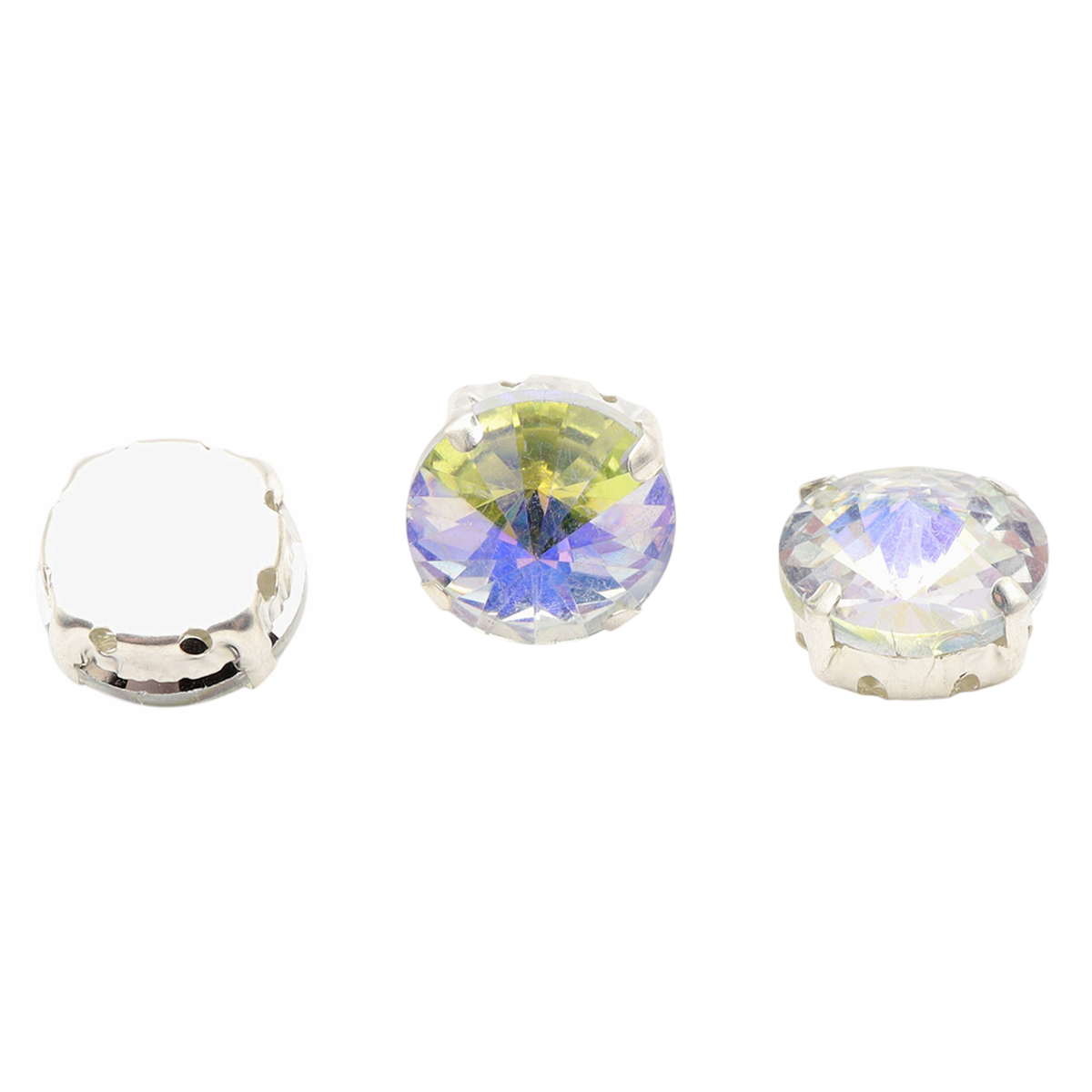 РЦ003НН12 Хрустальные стразы в цапах круглой формы, белый c внутренним AB покрытием 12 мм, 3 шт, Astra&Craft