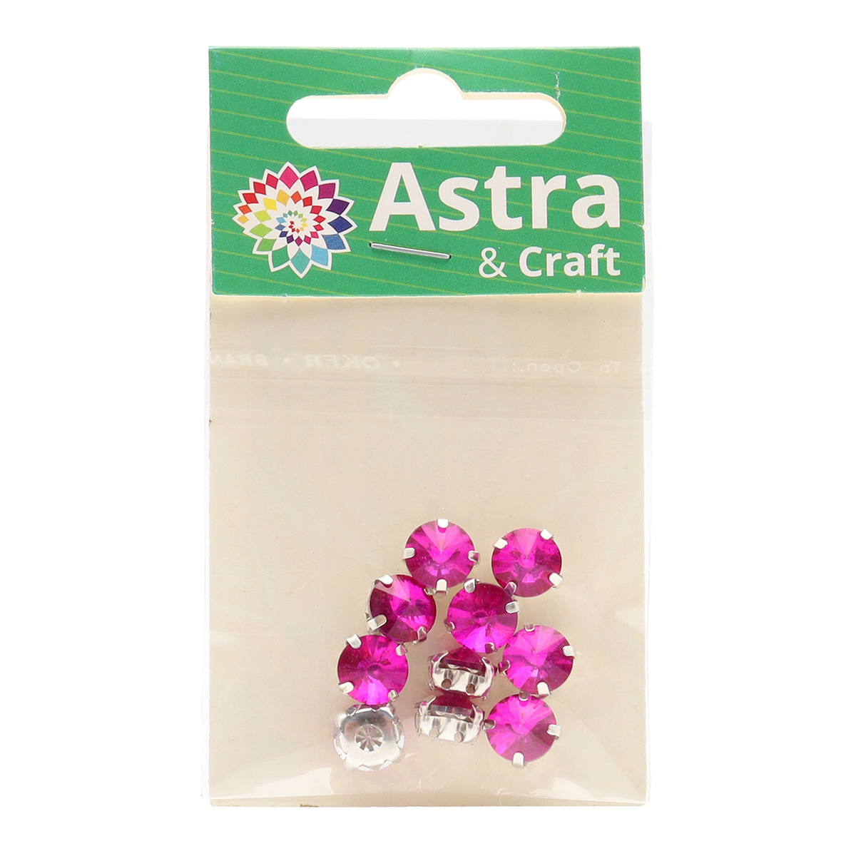 РЦ009НН8 Хрустальные стразы в цапах круглой формы, фуксия 8 мм, 10 шт. Astra&Craft