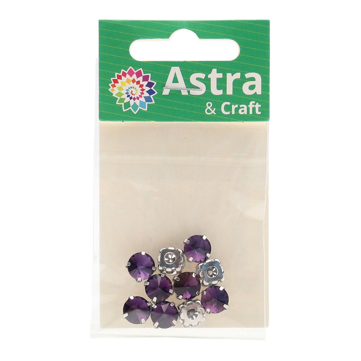 РЦ012НН8 Хрустальные стразы в цапах круглой формы, фиолетовый 8 мм, 10 шт. Astra&Craft