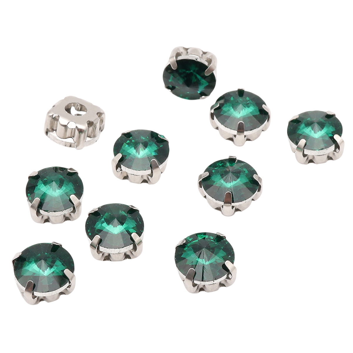 РЦ015НН8 Хрустальные стразы в цапах круглой формы, изумрудный 8 мм, 10 шт. Astra&Craft
