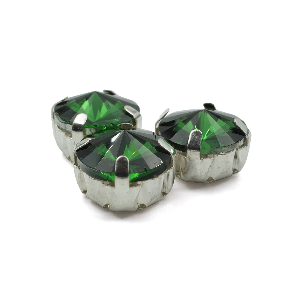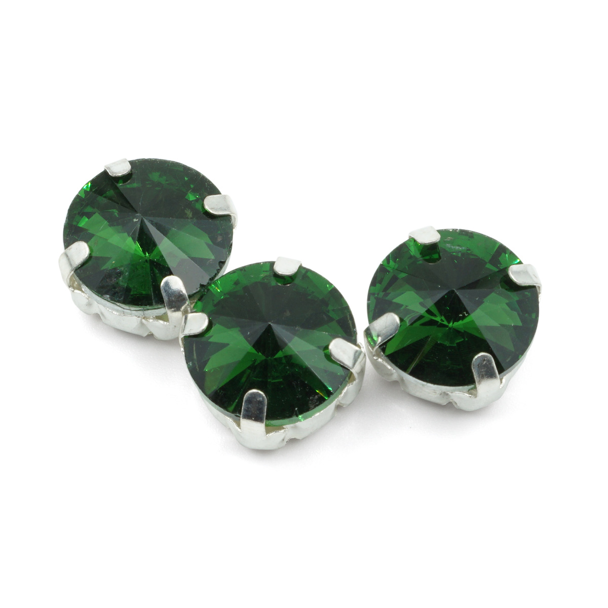 РЦ017НН12 Хрустальные стразы в цапах круглой формы, зеленый 12 мм, 3 шт. Astra&Craft