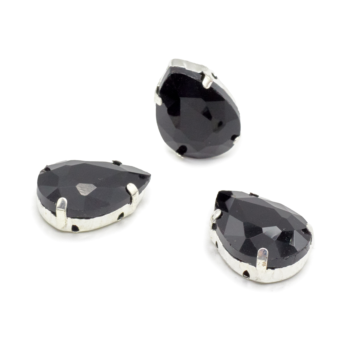АЦ013НН1014 Хрустальные стразы в цапах формы 'капля', черный 10х14 мм, 5 шт