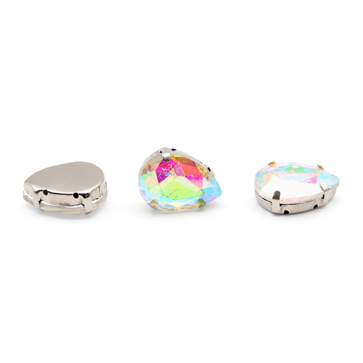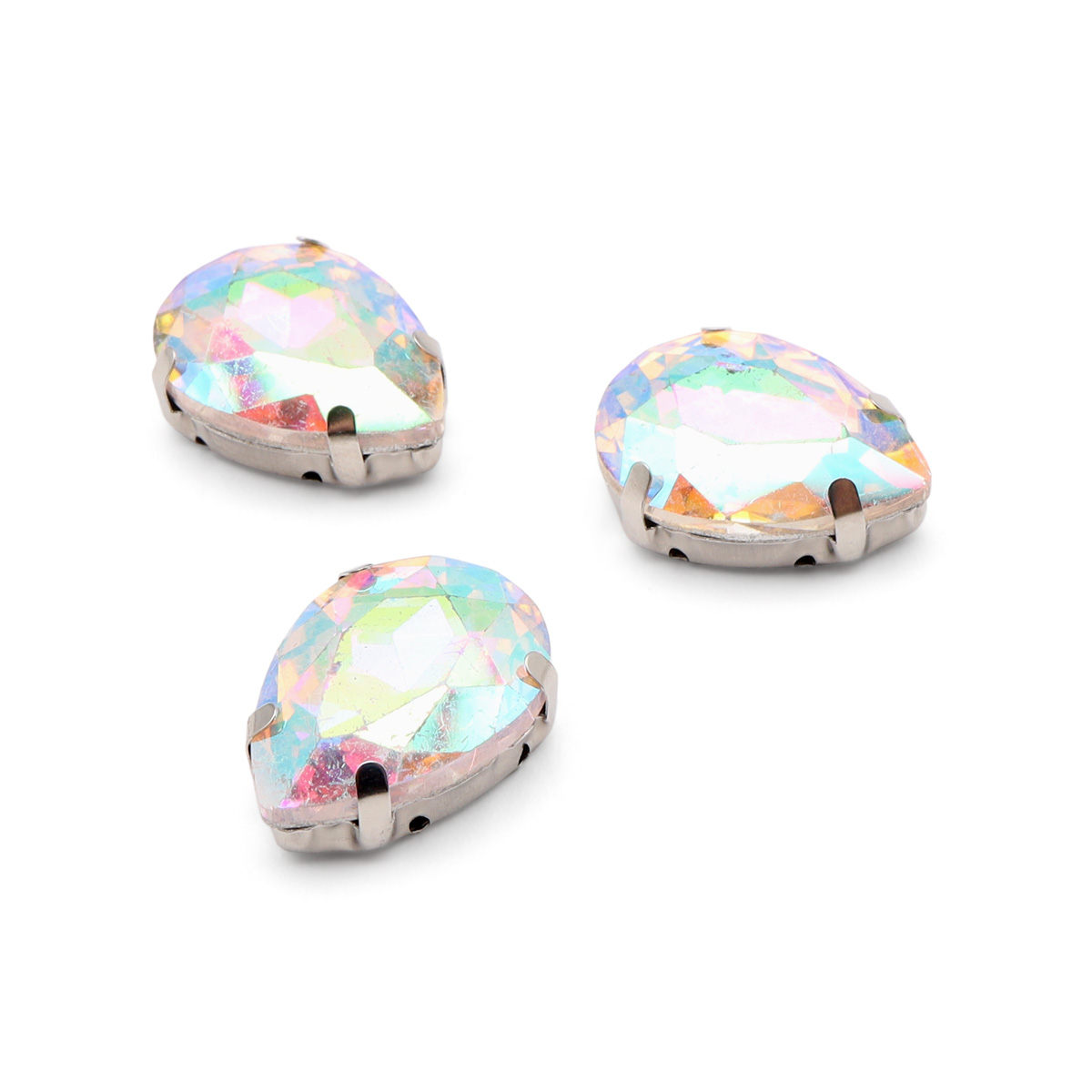 АЦ014НН1318 Хрустальные стразы в цапах формы 'капля', белый с покрытием AB 13х18, 3 шт