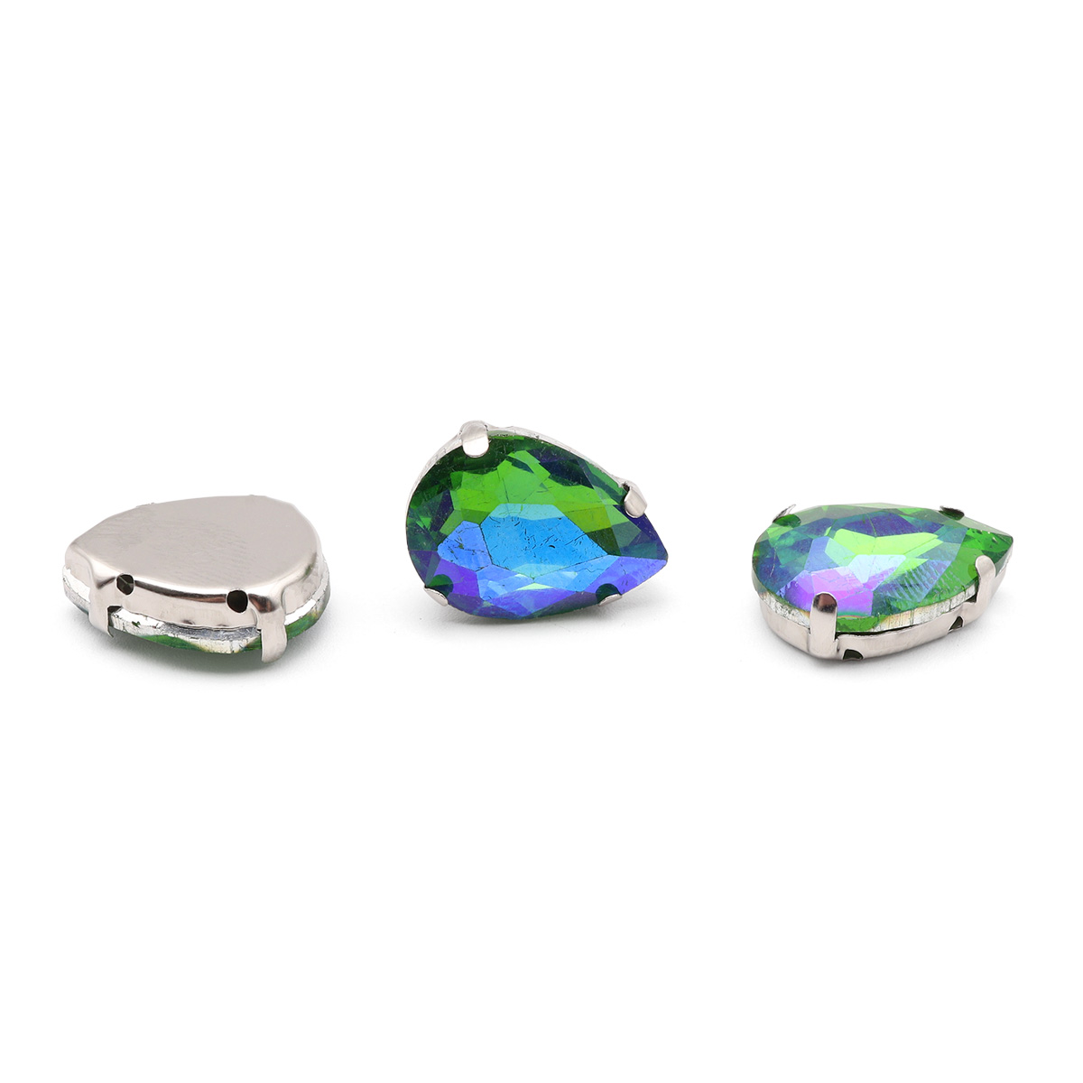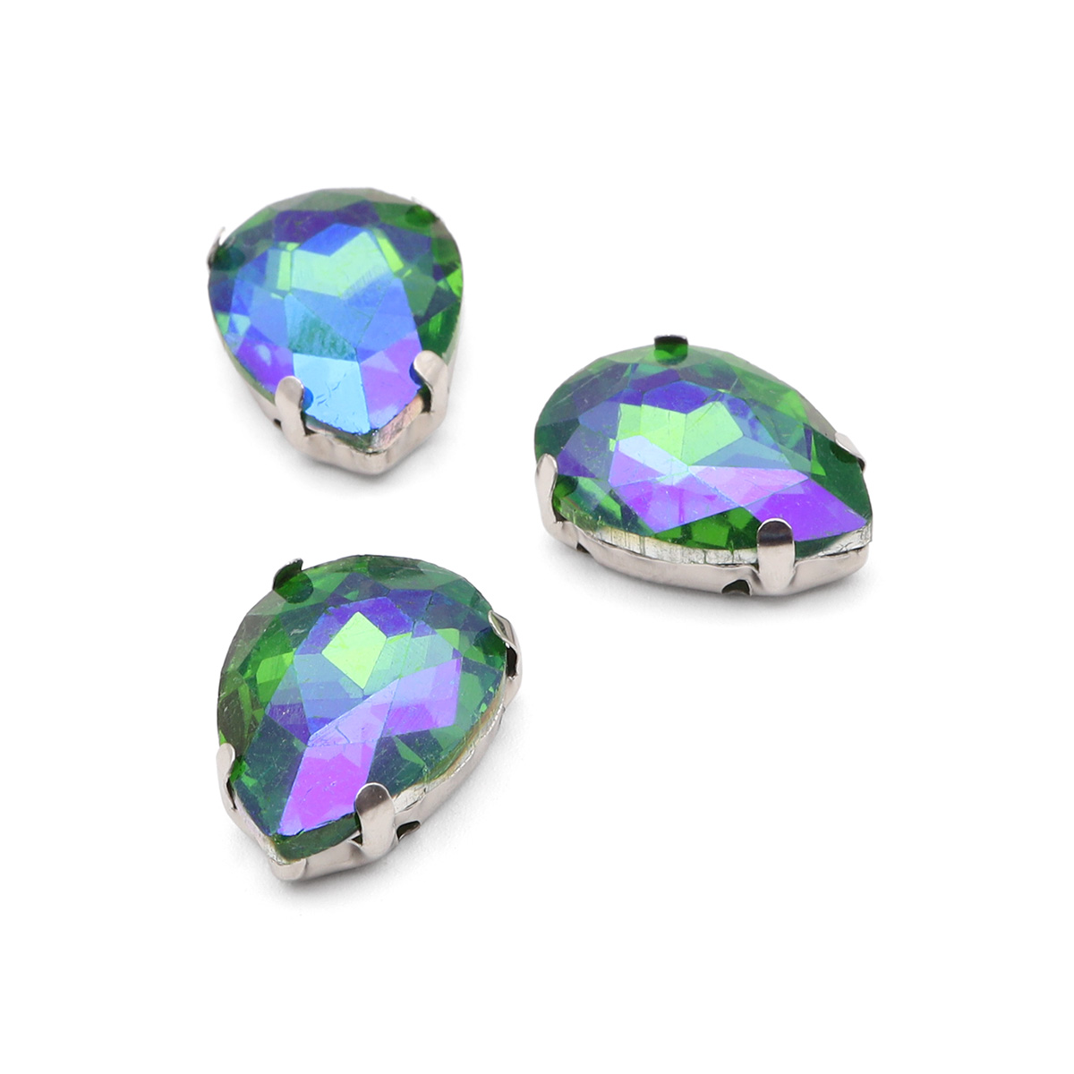 АЦ015НН1318 Хрустальные стразы в цапах формы 'капля', зеленый с покрытием AB 13х18, 3 шт