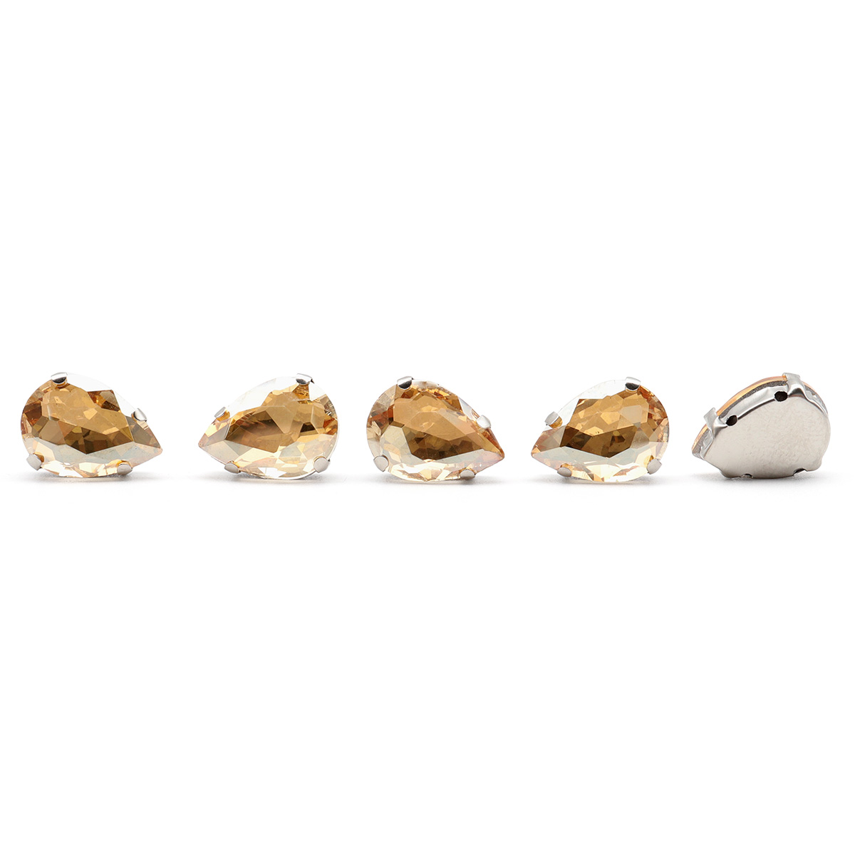 АЦ016НН1014 Хрустальные стразы в цапах формы 'капля', шампанское 10х14, 5 шт