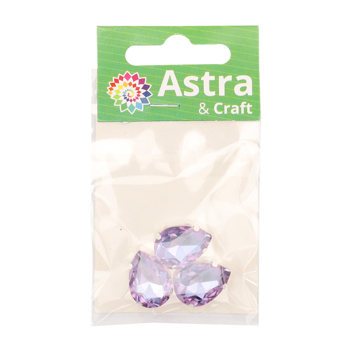 АЦ021НН1318 Хрустальные стразы в цапах формы 'капля', сиреневый 13х18, 3 шт.