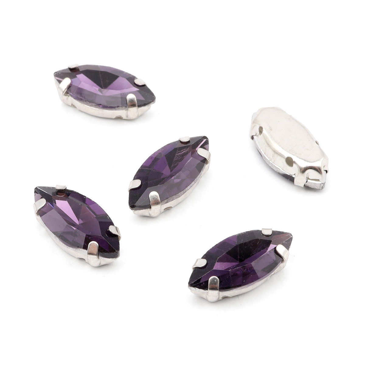 МЦ018НН715 Хрустальные стразы в цапах формы 'миндаль', фиолетовый, 7х15 мм, 5 шт.