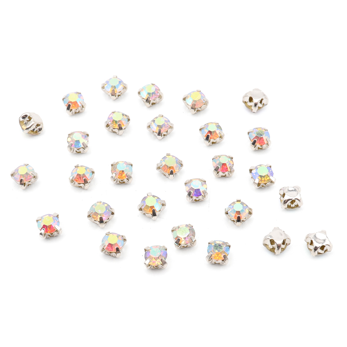 СЦ001ДС44 Хрустальные стразы в цапах круглые (серебро) белый (с покрытием), 4 мм, 29-30 шт/упак