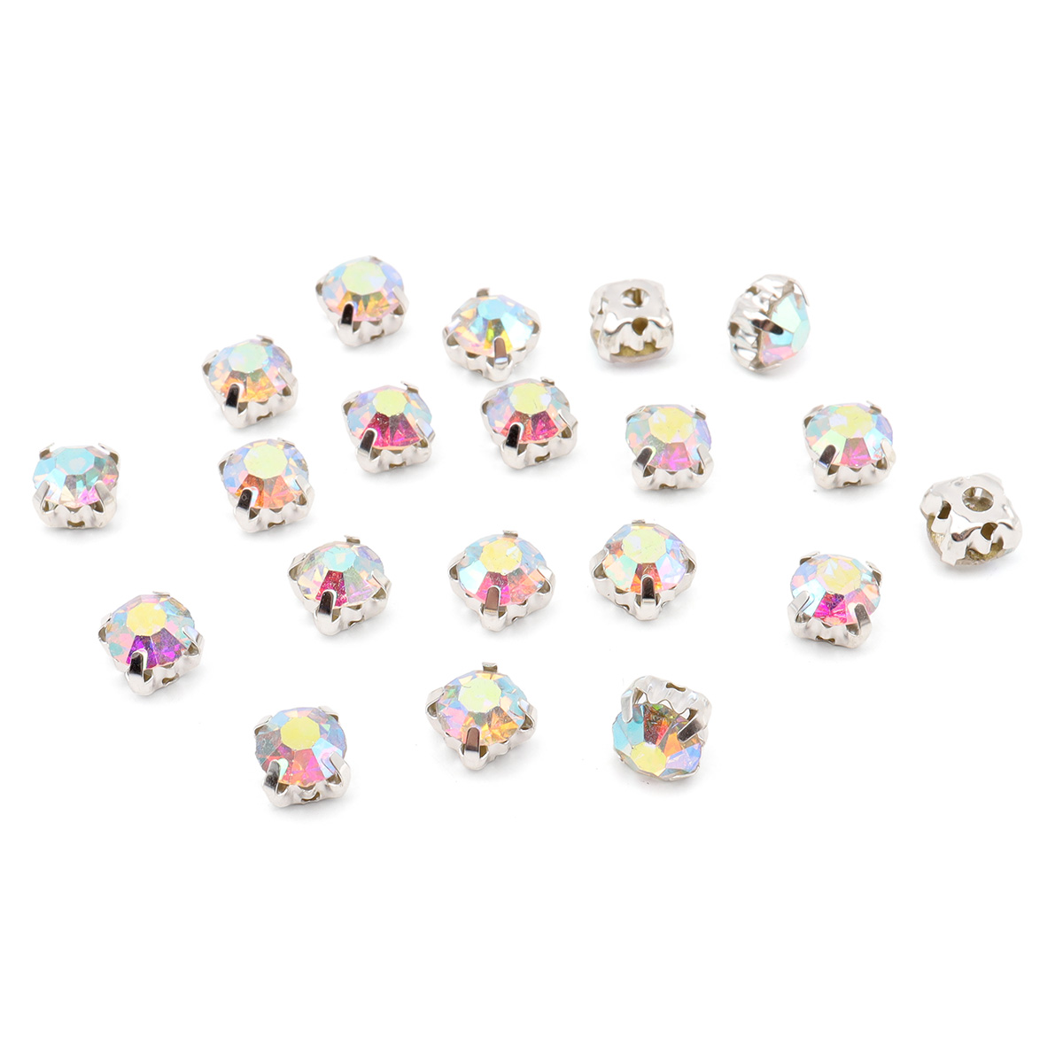СЦ001ДС66 Хрустальные стразы в цапах круглые (серебро) белый (с покрытием), 6 мм, 20 шт/упак