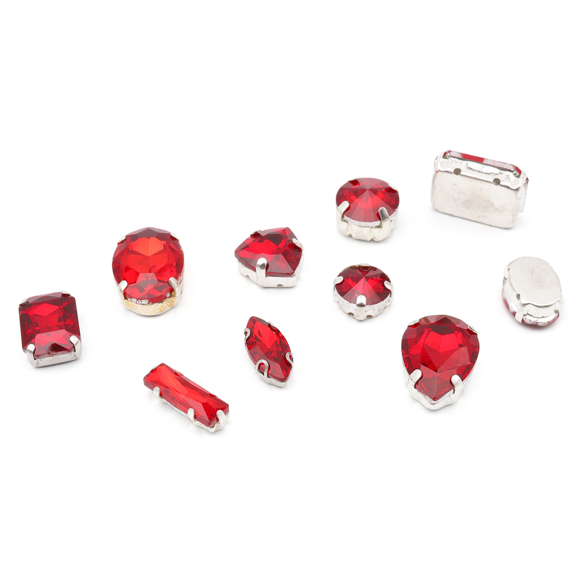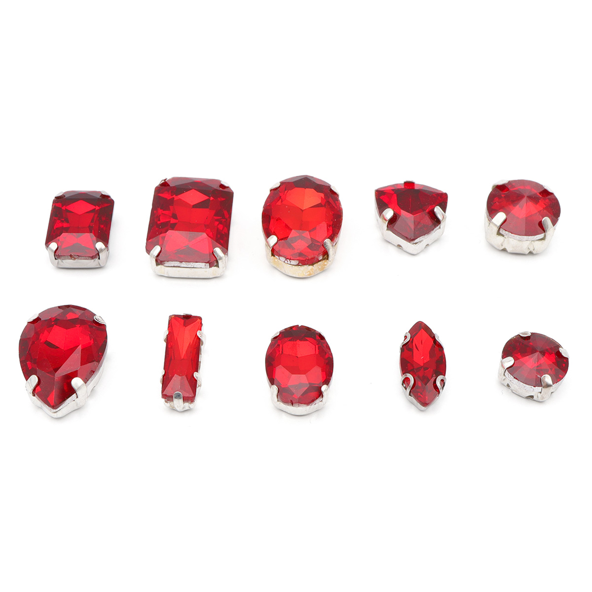 МФ-5 Хрустальные стразы в металлических цапах, форма страз: МИКС, красный, 10 шт/упак.