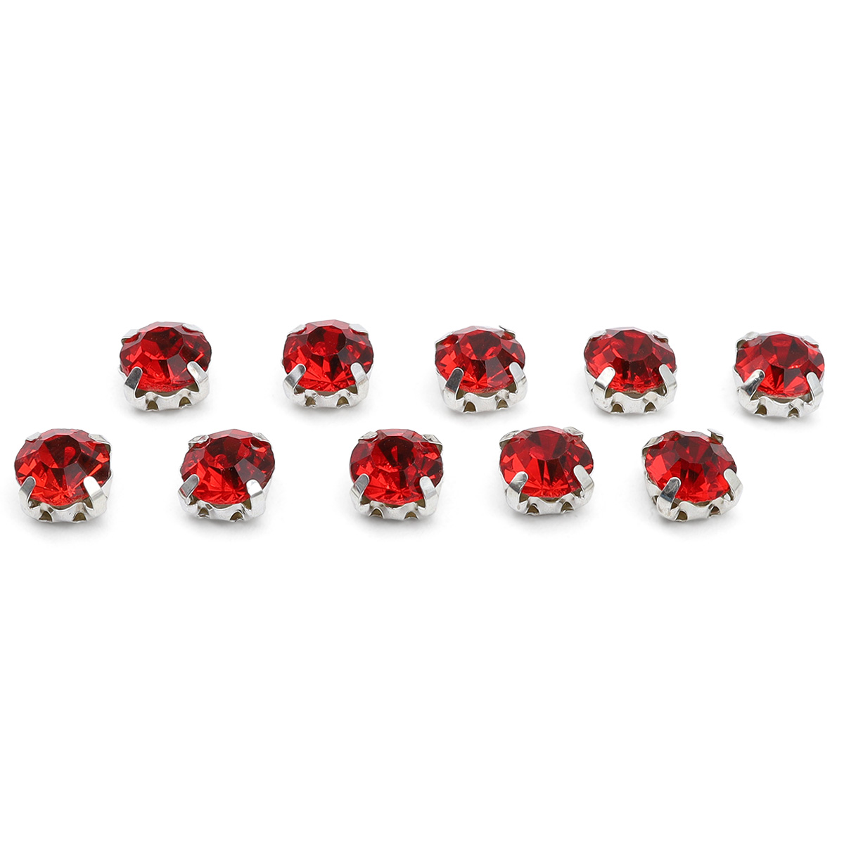 СЦ012НН88 Стразы в цапах круглые (шатоны) 8 мм цвет: красный, оправа: серебро, 10 шт\упак