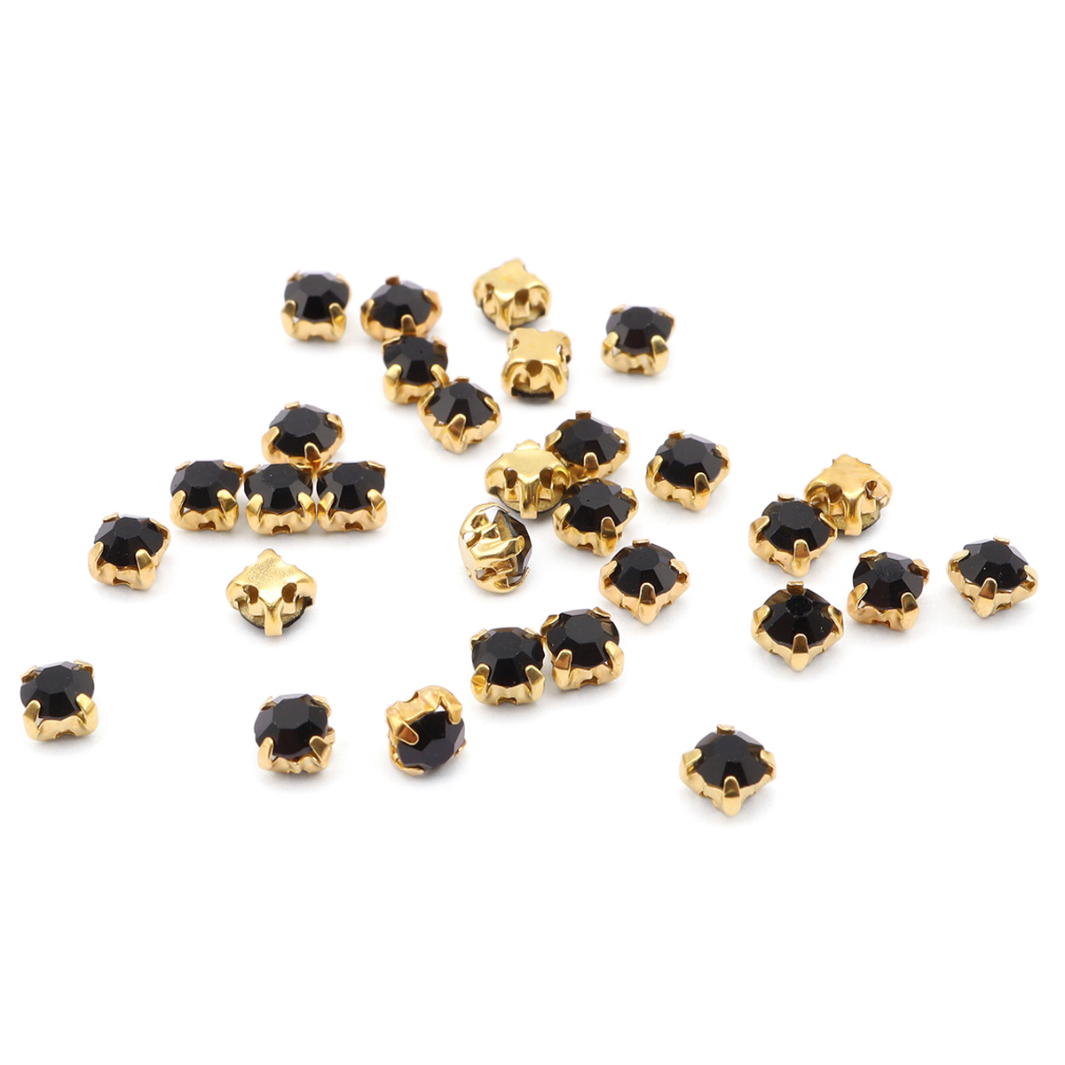 ЗЦ003НН44 Хрустальные стразы в цапах круглые (золото) черный 4*4мм, 29-30шт/упак Astra&Craft