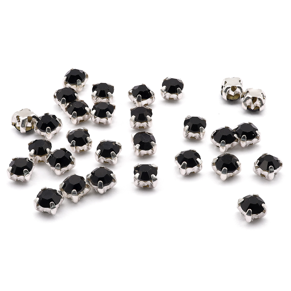 СЦ003НН44 Стразы в цапах круглые (шатоны) 4 мм цвет: черный, оправа: серебро, 30 шт\упак