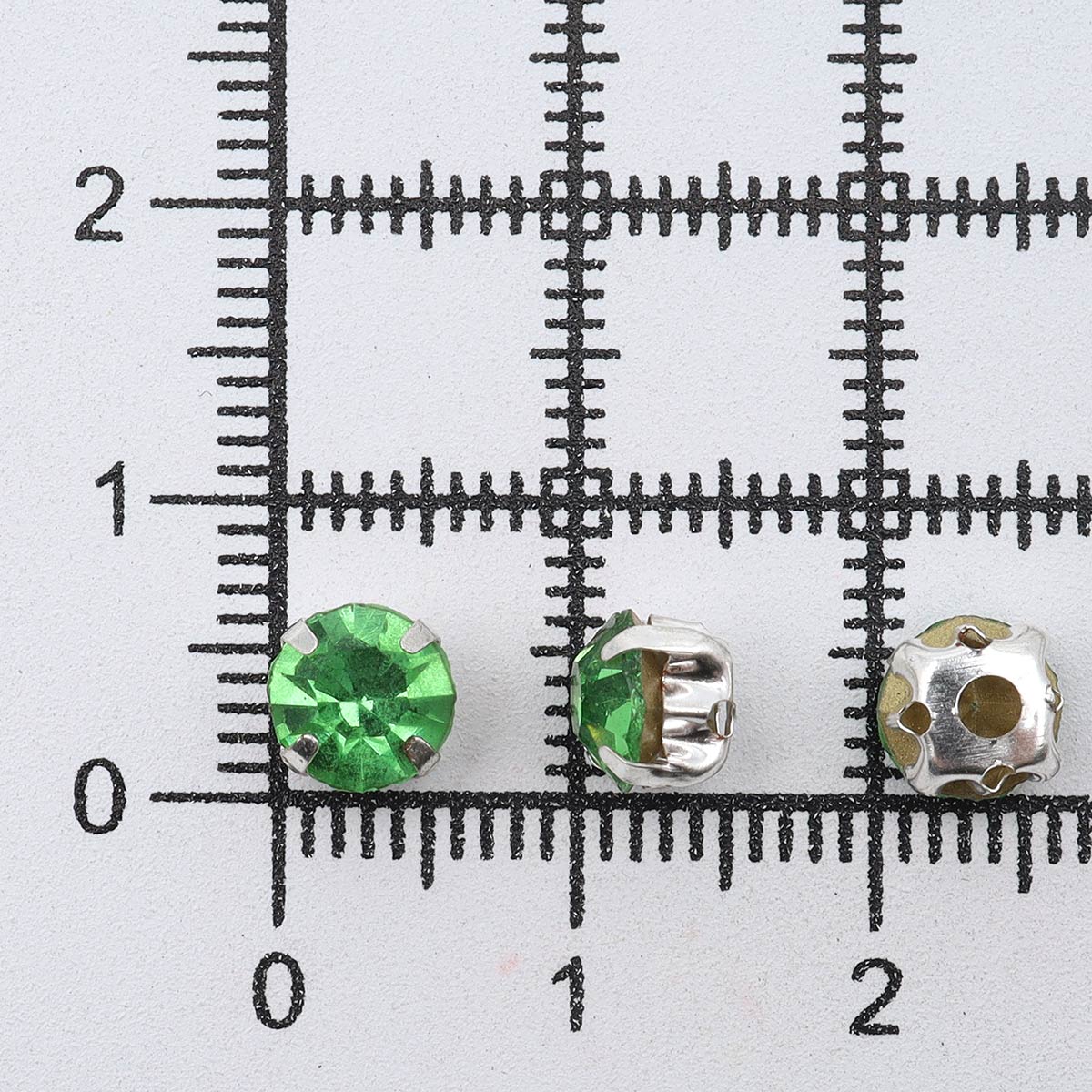 СЦ015НН66 Стразы в цапах круглые (шатоны) 6 мм цвет: зеленый, оправа: серебро, 20 шт\упак