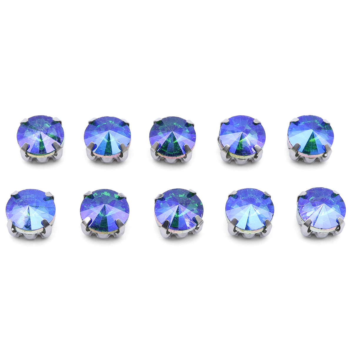 РЦ022НН8 Хрустальные стразы круглой формы в цапах, зеленый AB, 8 мм, 10 шт.