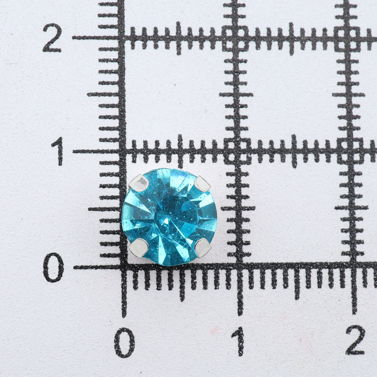 СЦ000НН88 Стразы в цапах круглые (шатоны) 8 мм МИКС цвета, оправа: серебро, 10 шт\упак