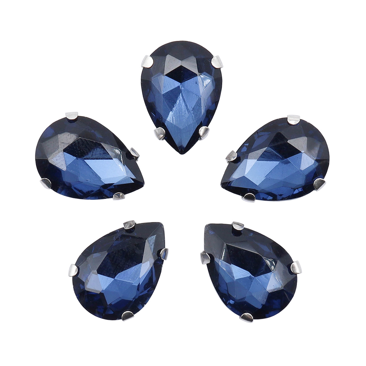 АЦ028НН1014 Хрустальные стразы в цапах формы 'капля', полуночный синий 10х14мм, 5шт