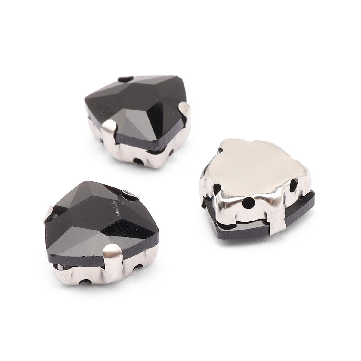 ТЦ022НН12 Хрустальные стразы в цапах треугольные (серебро) черный 12мм, 3шт/упак Astra&Craft
