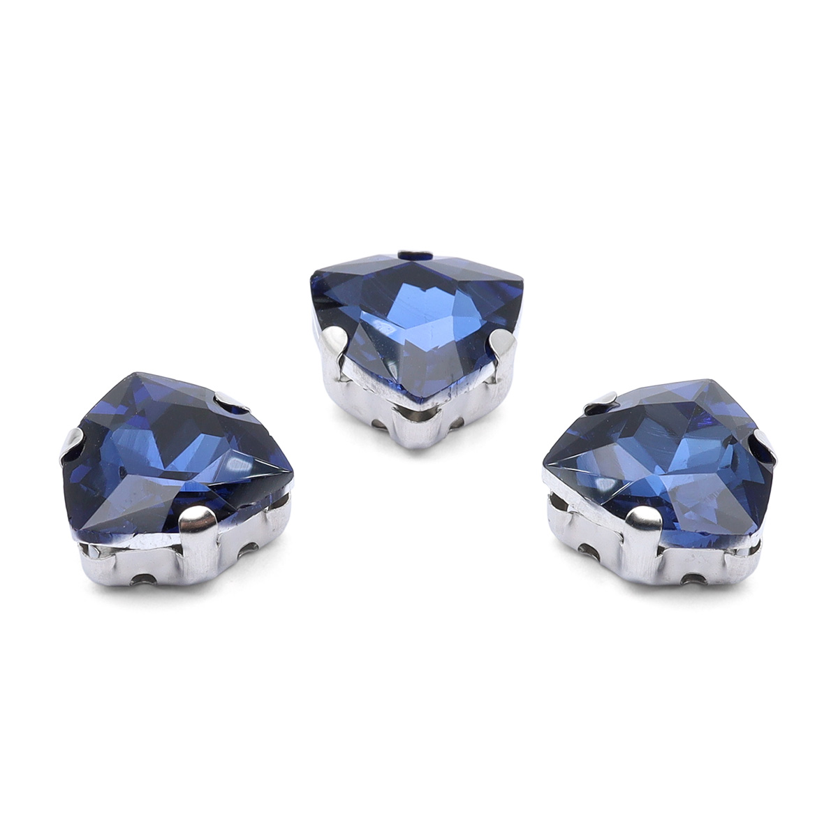 ТЦ023НН12 Хрустальные стразы в цапах треугольные (серебро) полуночный синий 12мм, 3шт/упак Astra&Craft