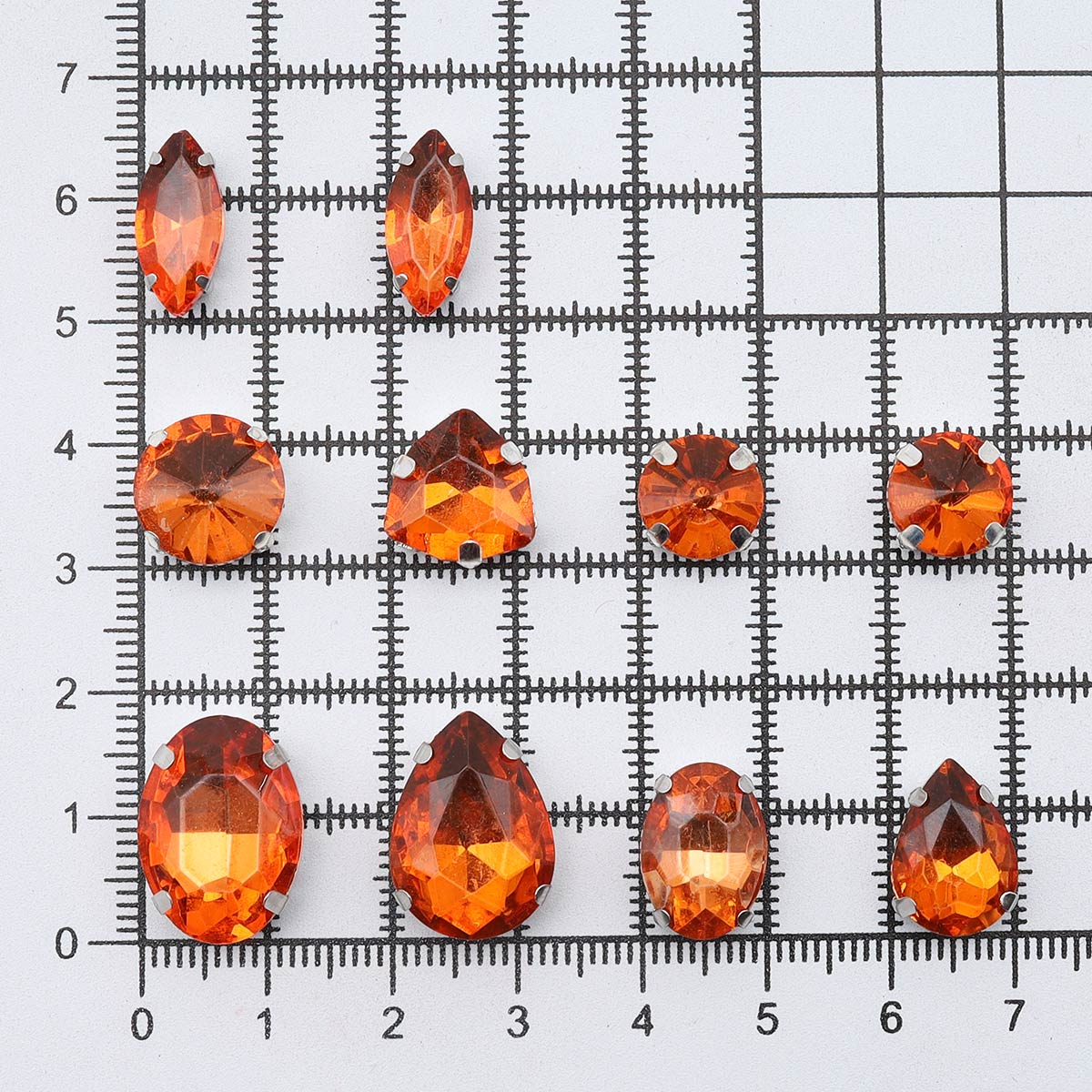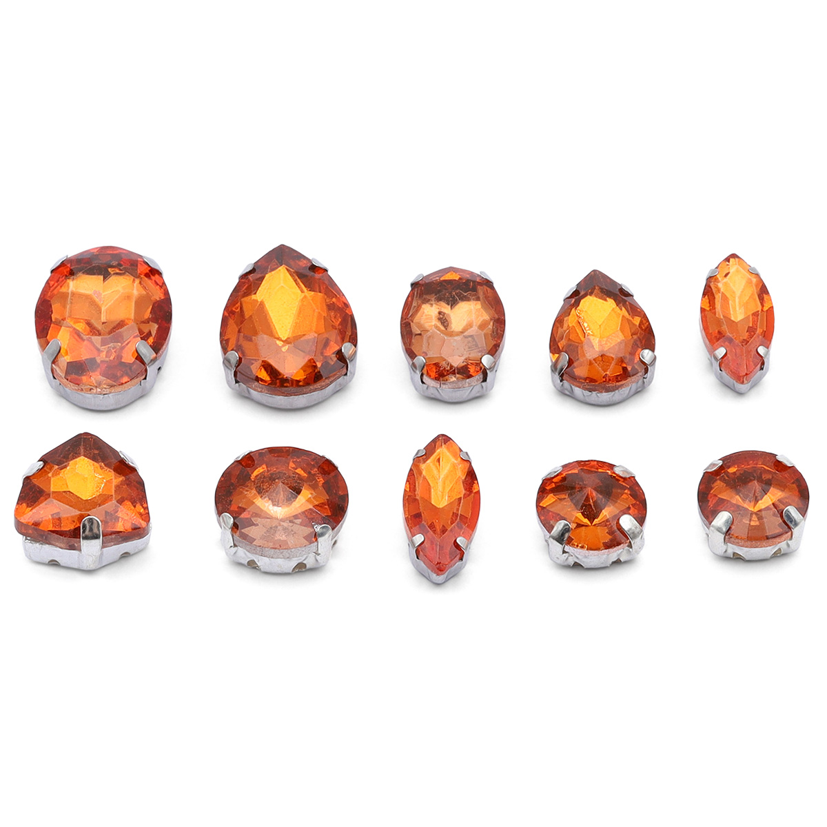 МФ-17 Хрустальные стразы в металлических цапах, форма страз: МИКС, оранжевый, 10шт/упак