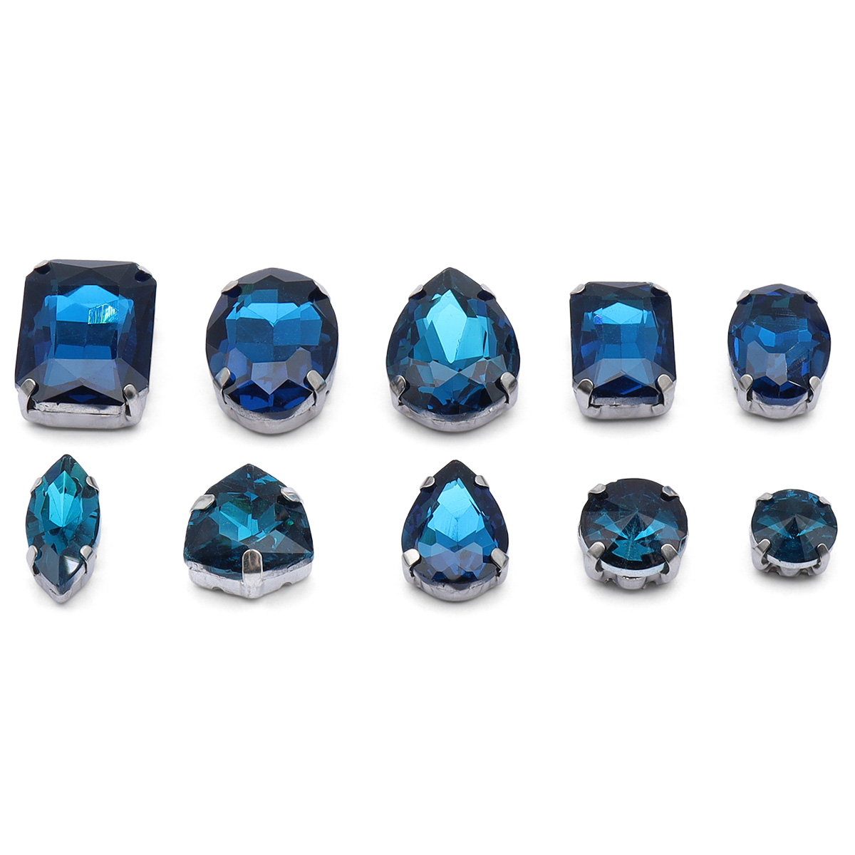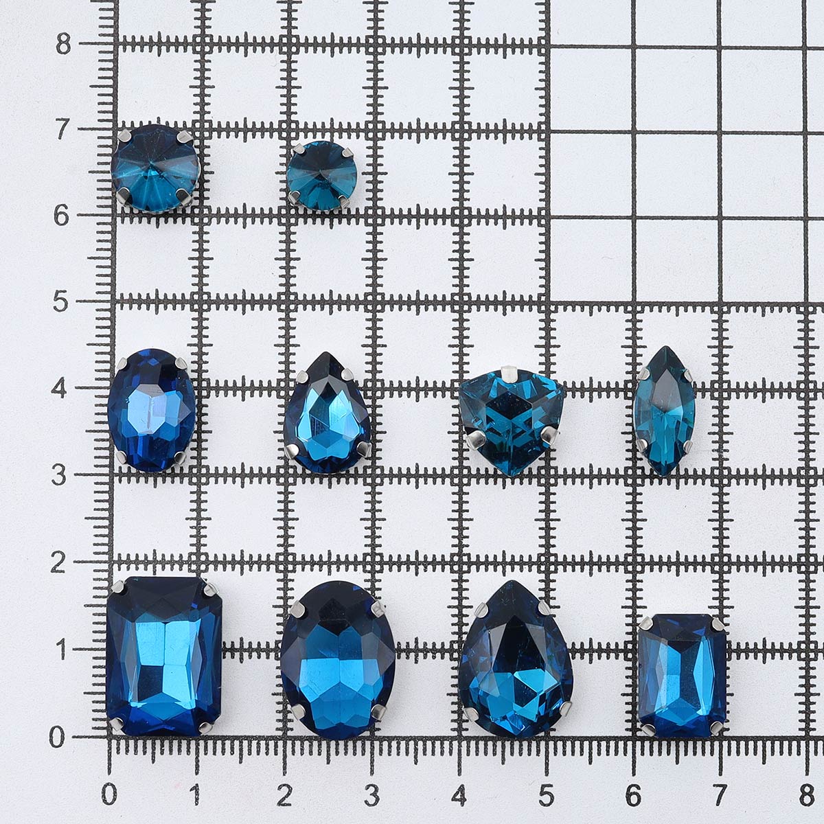 МФ-22 Хрустальные стразы в металлических цапах, форма страз: МИКС, лазурный, 10шт/упак