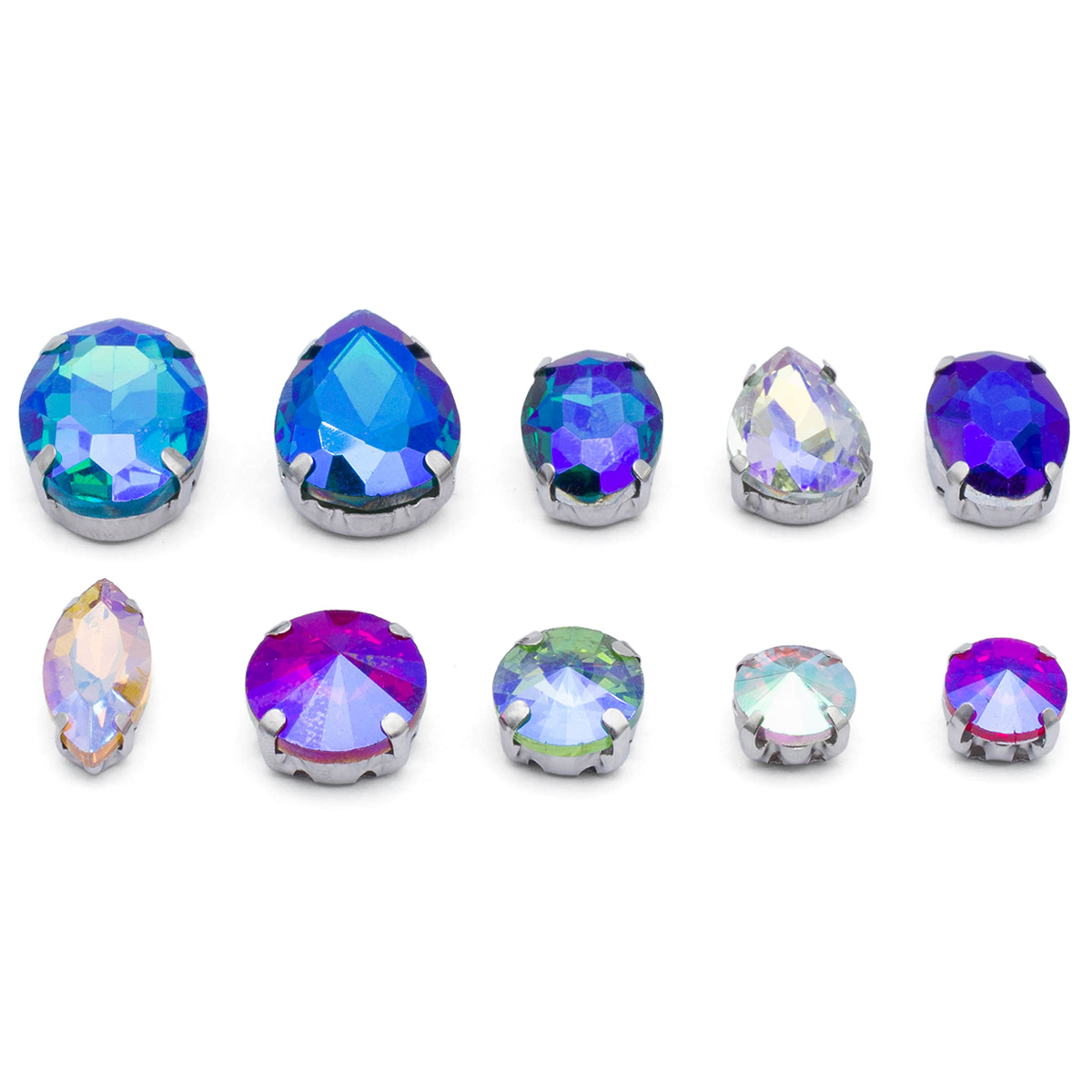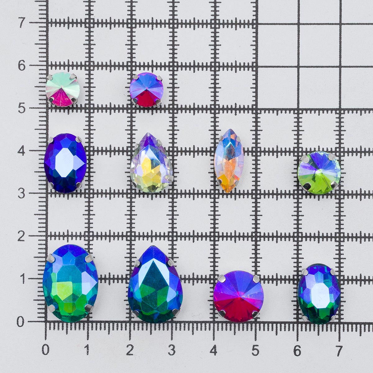 МФ-00 Хрустальные стразы в цапах с AB покрытием, форма страз: МИКС, цв: МИКС, 10 шт/упак Astra&Craft