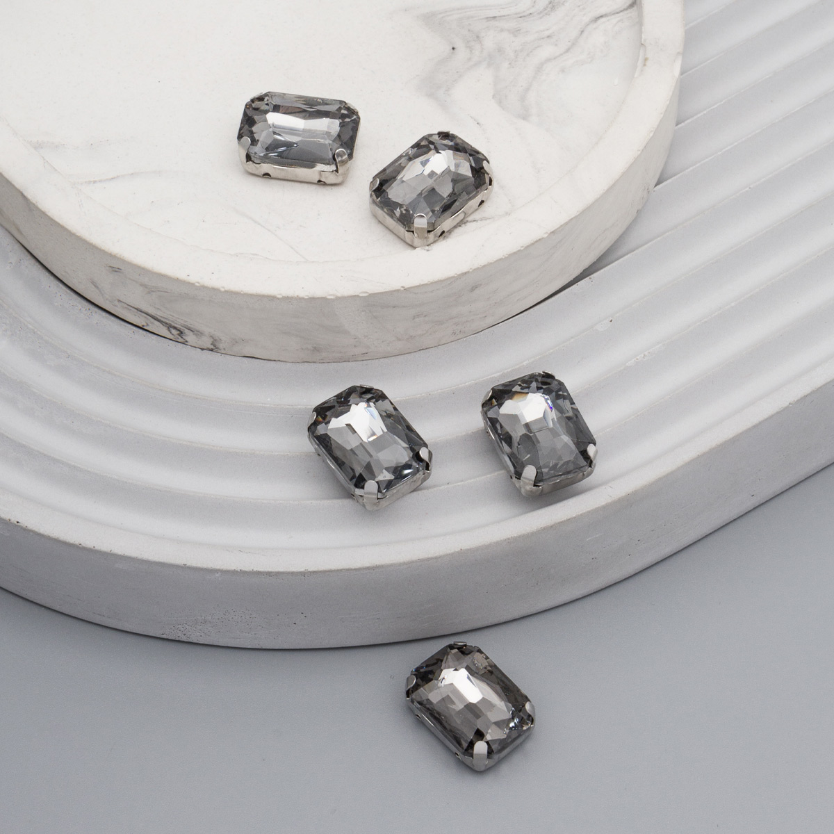 ПЦ015НН1014 Хрустальные стразы в цапах прямоугольные (серебро) серый 10*14мм, 5шт/упак Astra&Craft