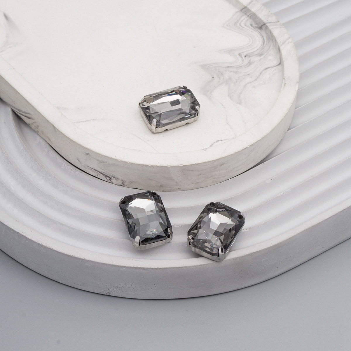 ПЦ015НН1318 Хрустальные стразы в цапах прямоугольные (серебро) серый 13*18 мм, 3 шт/упак Astra&Craft