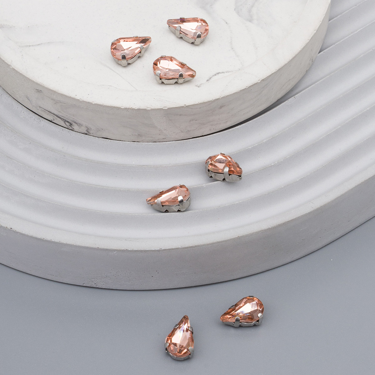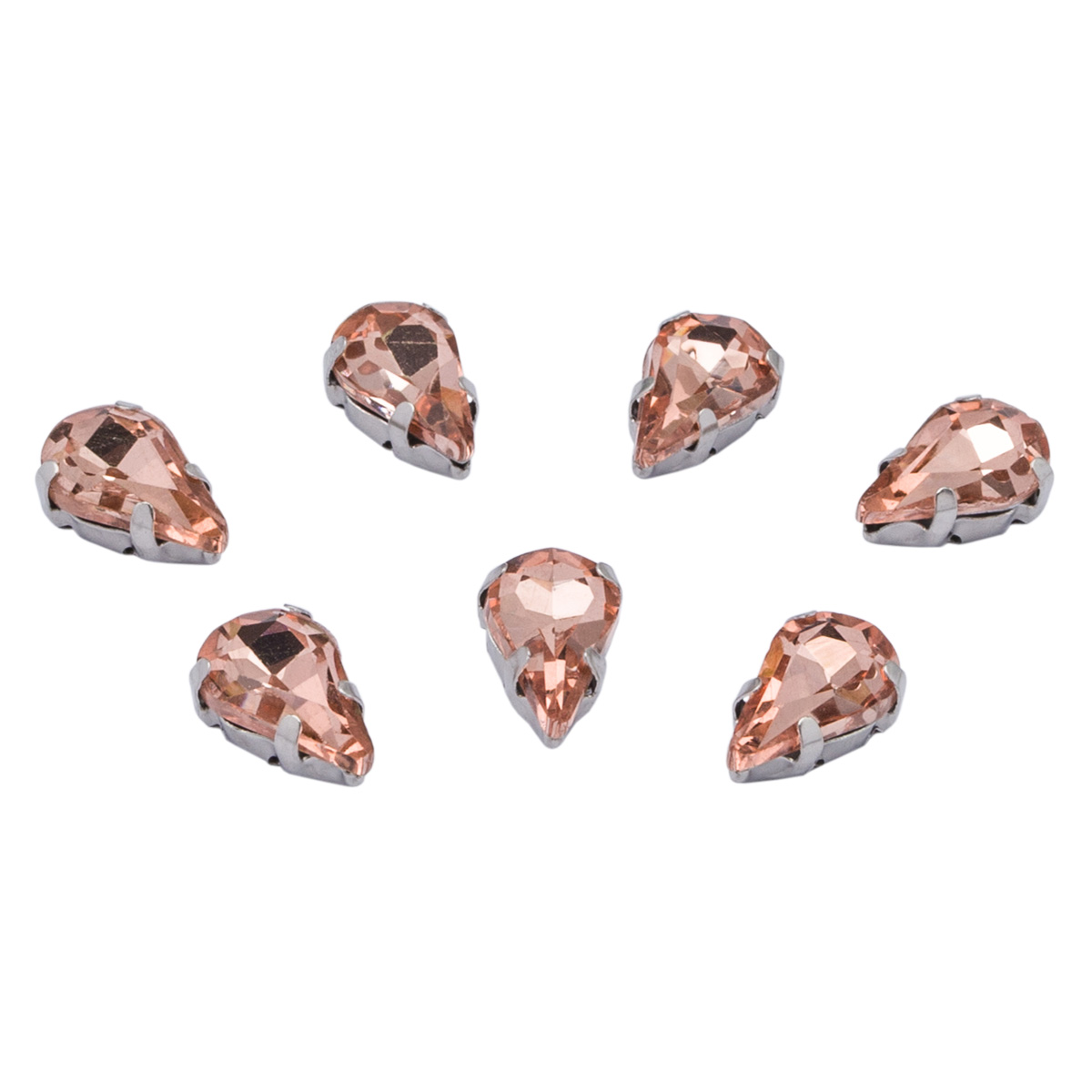АЦ018НН610 Хрустальные стразы в цапах формы 'капля', персиковый, 6х10мм, 7шт